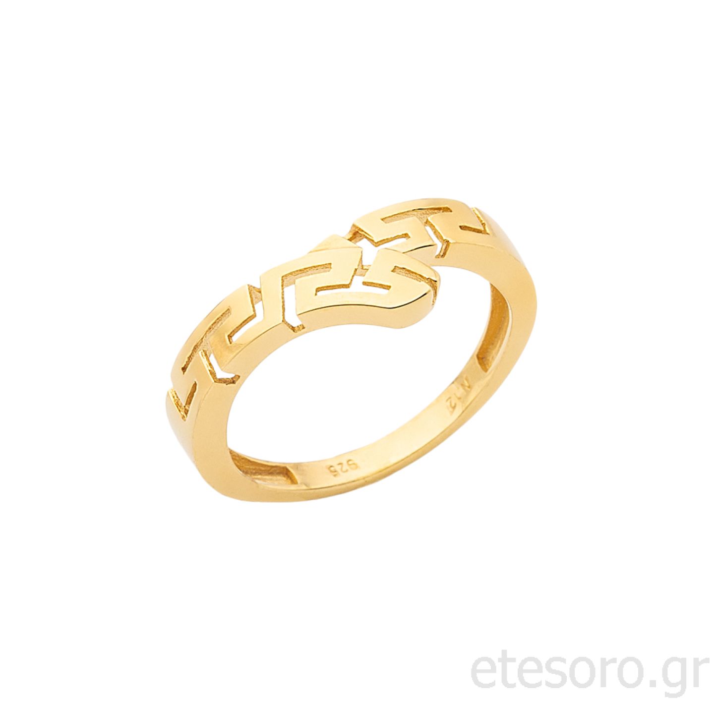 Δαχτυλίδι κατασκευασμένο από χρυσό 14 καρατίων. Με ασύμμετρο σχέδιο και σχηματισμένο με το μοτίβο Μαιάνδρου.