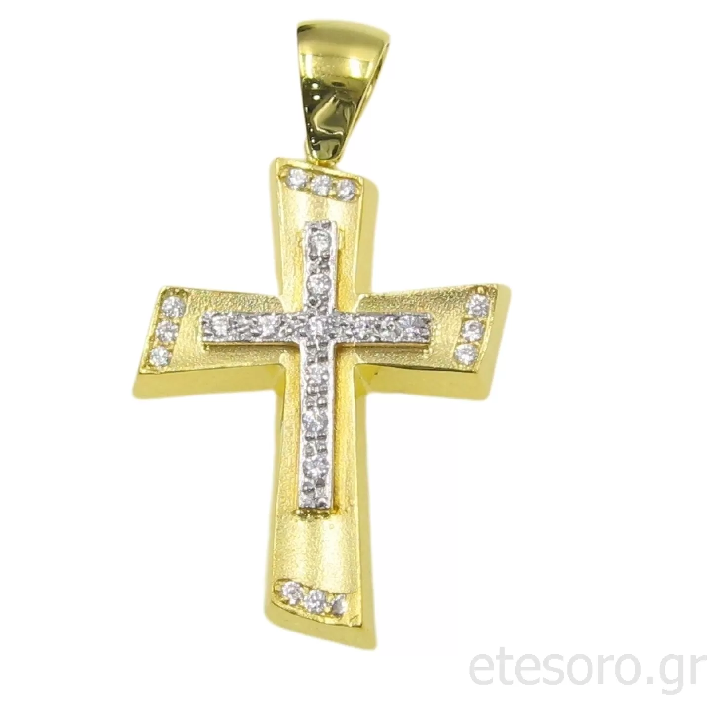 14Κ Χρυσός Γυναικείος Δίχρωμος Βαπτιστικός Σταυρός Ζιρκόν