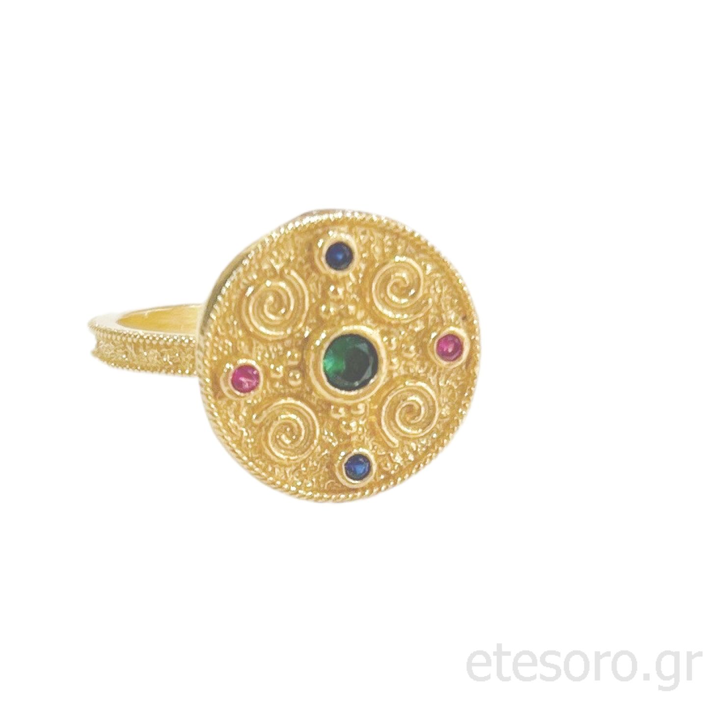 Δαχτυλίδι με βυζαντινό σχέδιο και ζιργκόν.