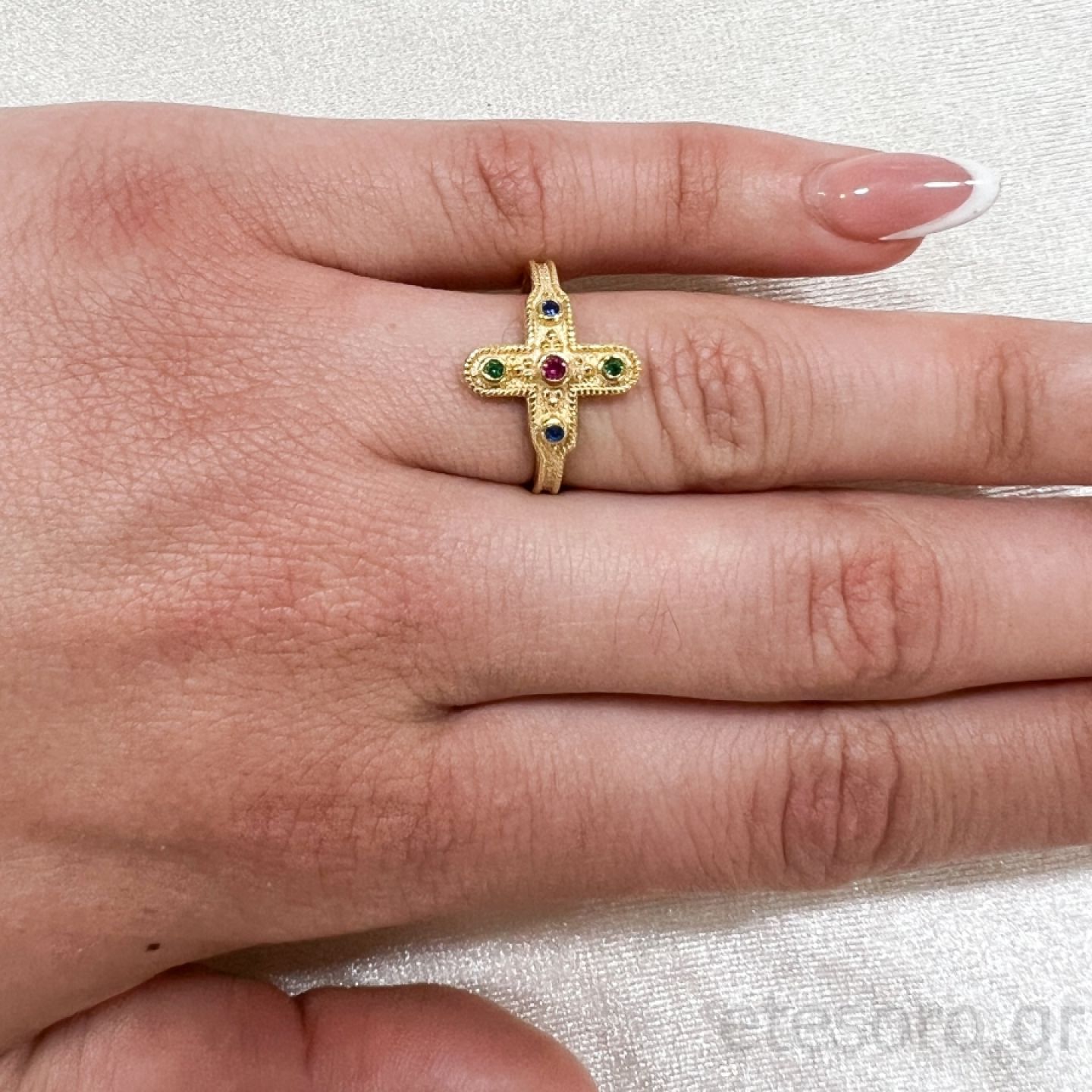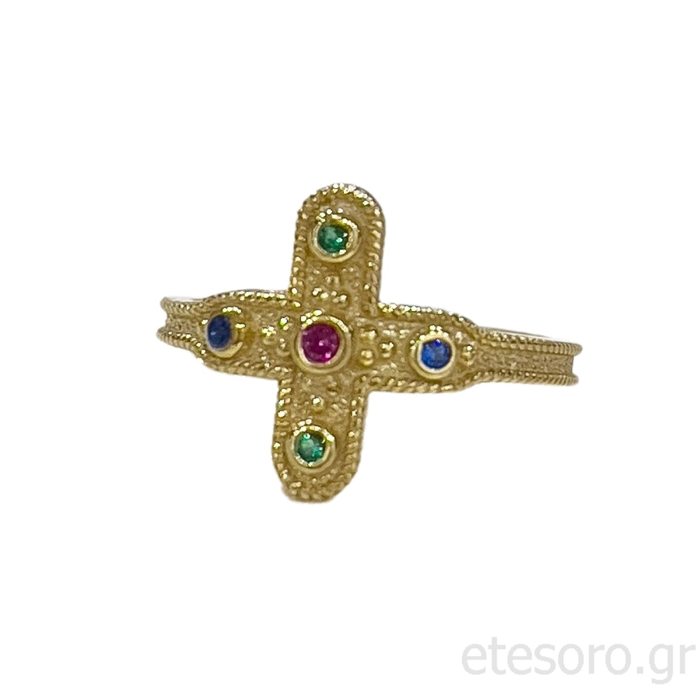 Δαχτυλίδι με βυζαντινό σχέδιο και ζιργκόν.