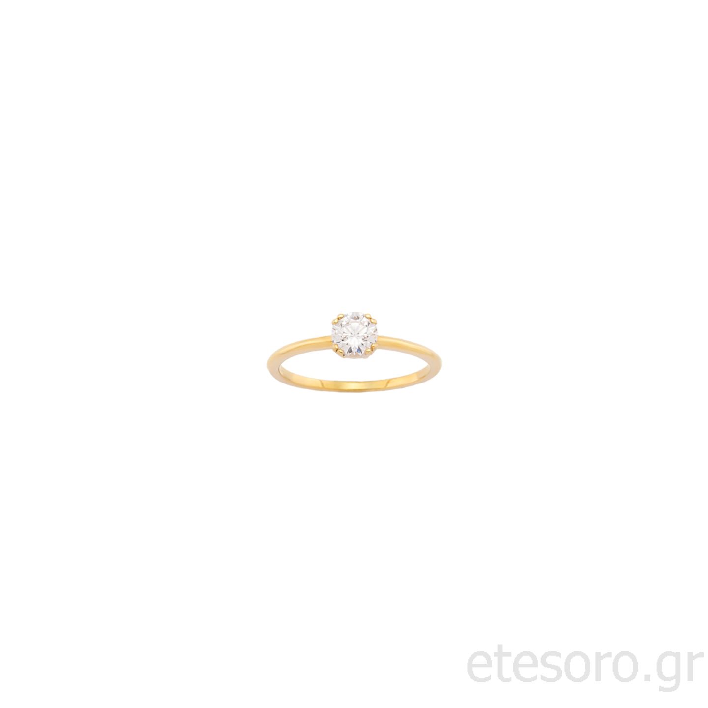 14Κ Χρυσό Δαχτυλίδι Μονόπετρο Με Λευκό Στρογγυλό Ζιργκόν