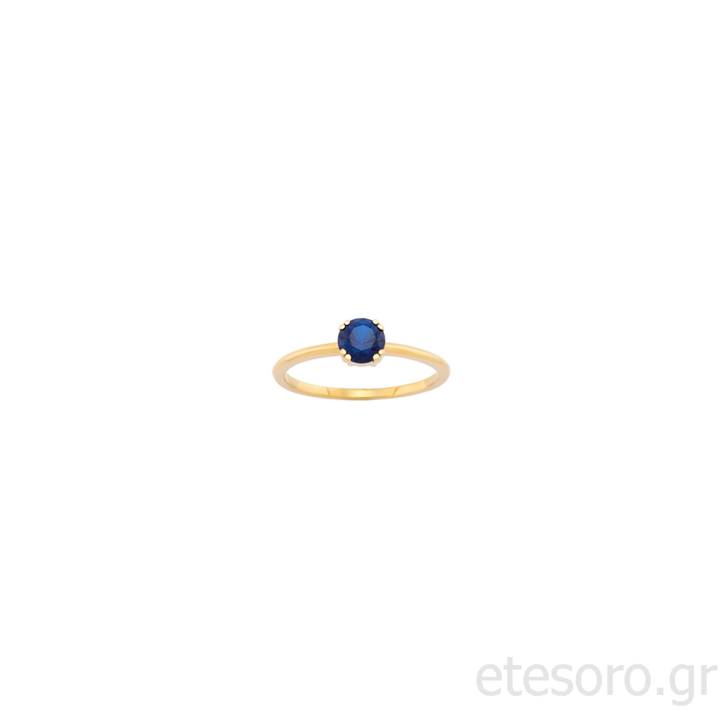 14Κ Χρυσό Δαχτυλίδι Μονόπετρο Με Μπλε Στρογγυλό Ζιργκόν