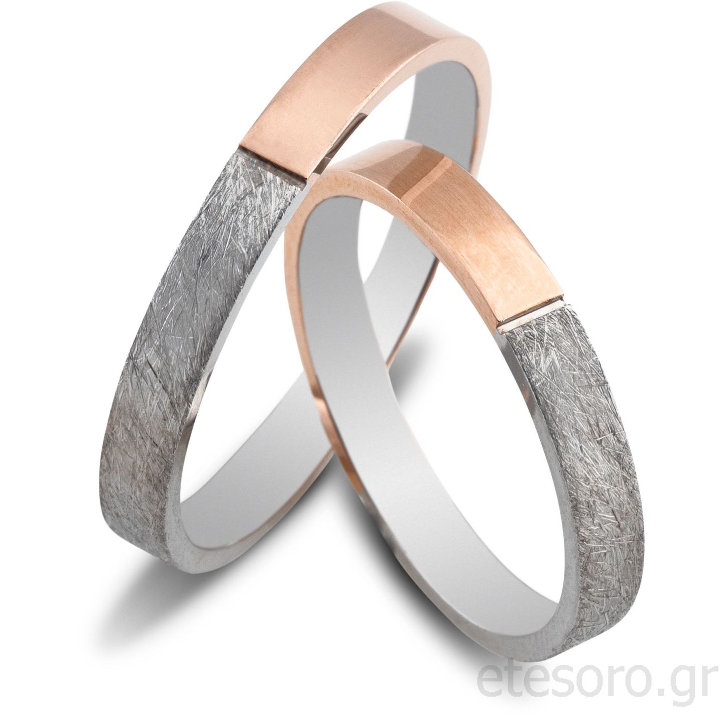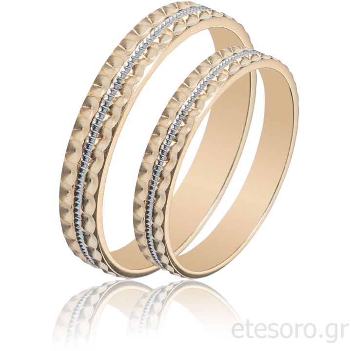 Βέρες δίχρωμες από ροζ και λευκό χρυσό 14 ἠ 18 καρατίων, με ανάγλυφη σαγρέ και γυαλιστερή επιφάνεια.