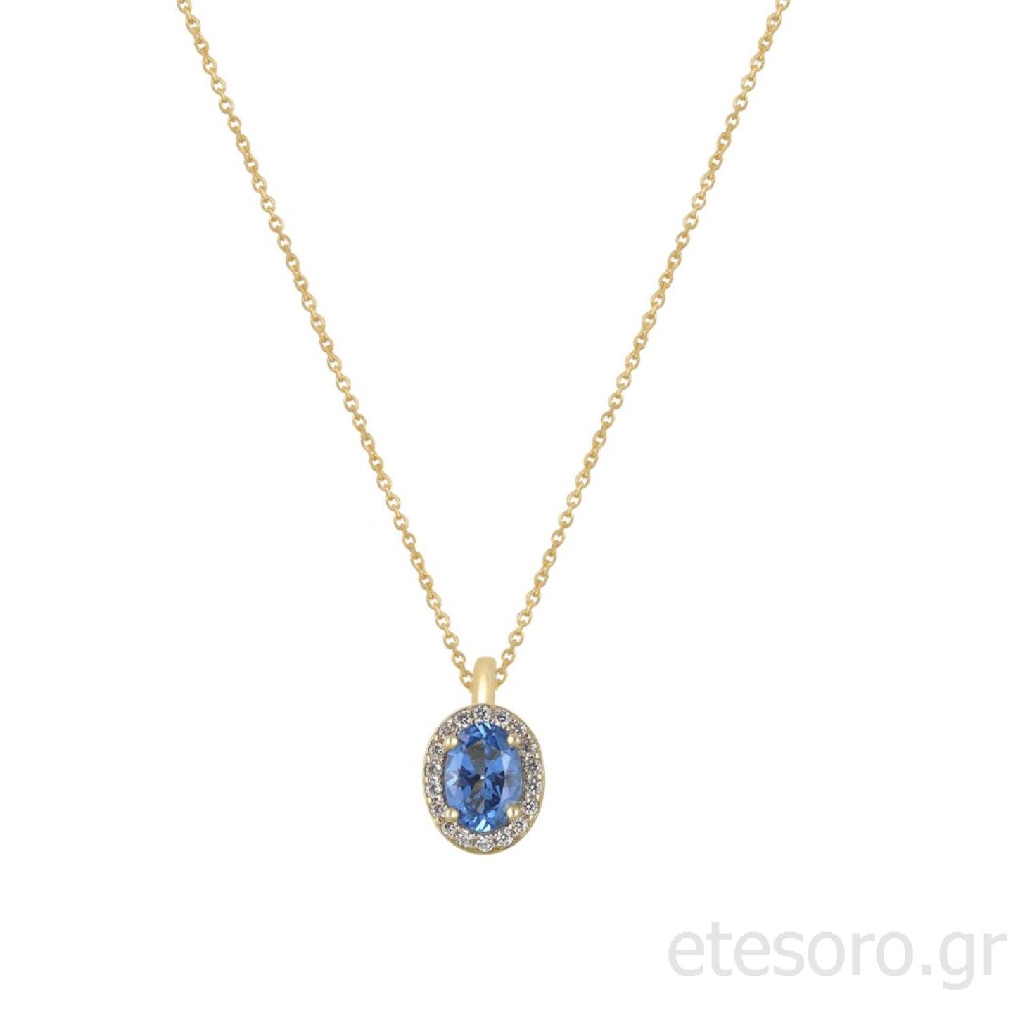 με εντυπωσιακή Ζιργκόν πέτρα, σε μπλε ρουά χρώμα και οβάλ σχήμα στο κέντρο