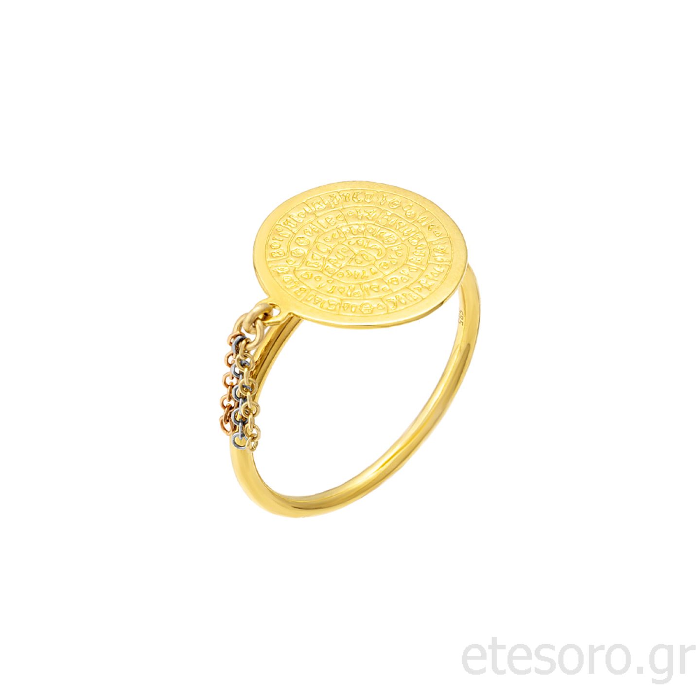 Δαχτυλίδι Δίσκος της Φαιστού κατασκευασμένο από χρυσό 14 καρατίων.