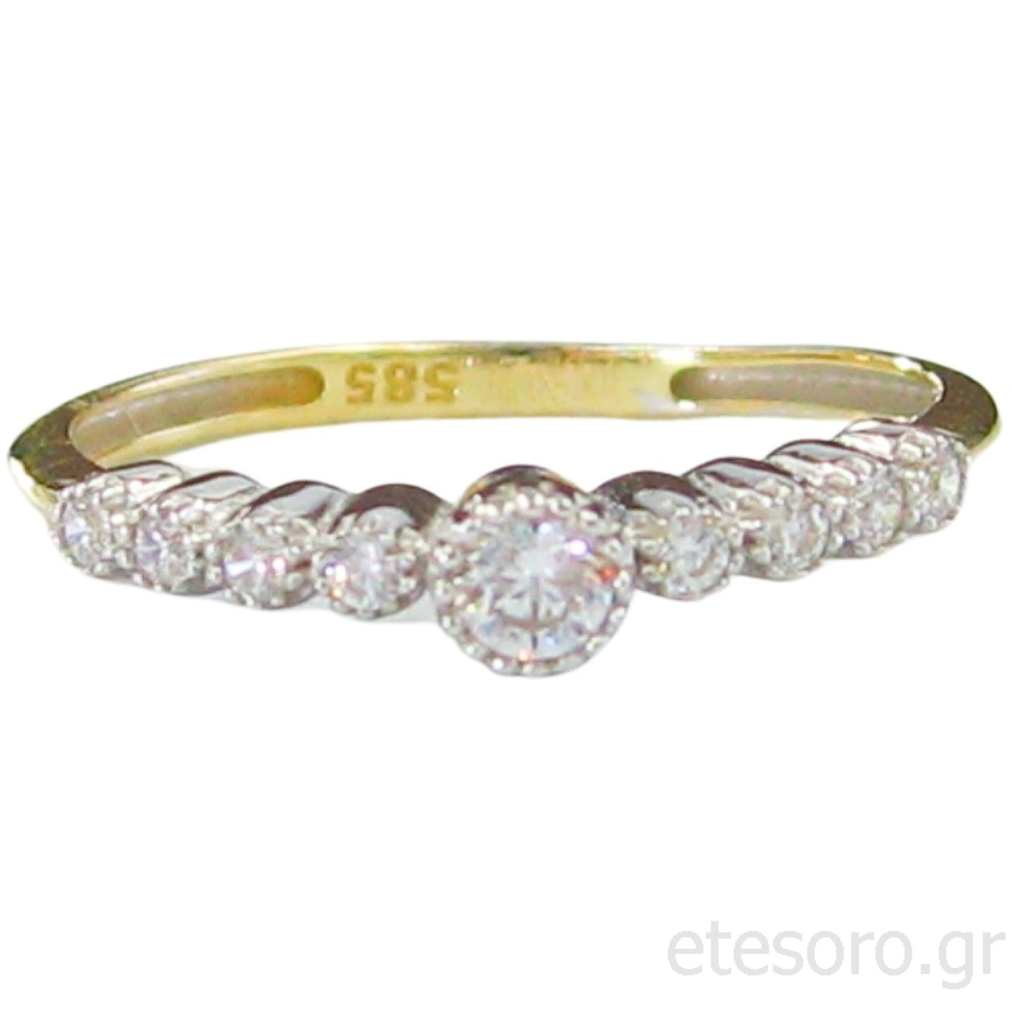 Γυναικείο δαχτυλίδι σειρέ κατασκευασμένο από χρυσό 14 καρατίων,