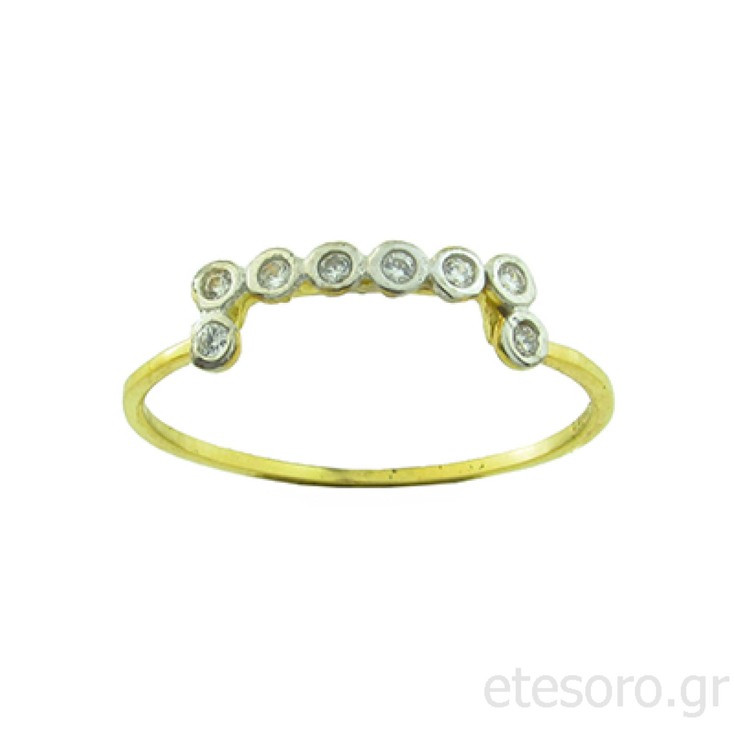 Δαχτυλίδι από κίτρινο και λευκό Χρυσό 14 καρατίων, με πέτρες Ζιργκόν, σε σχήμα Π.