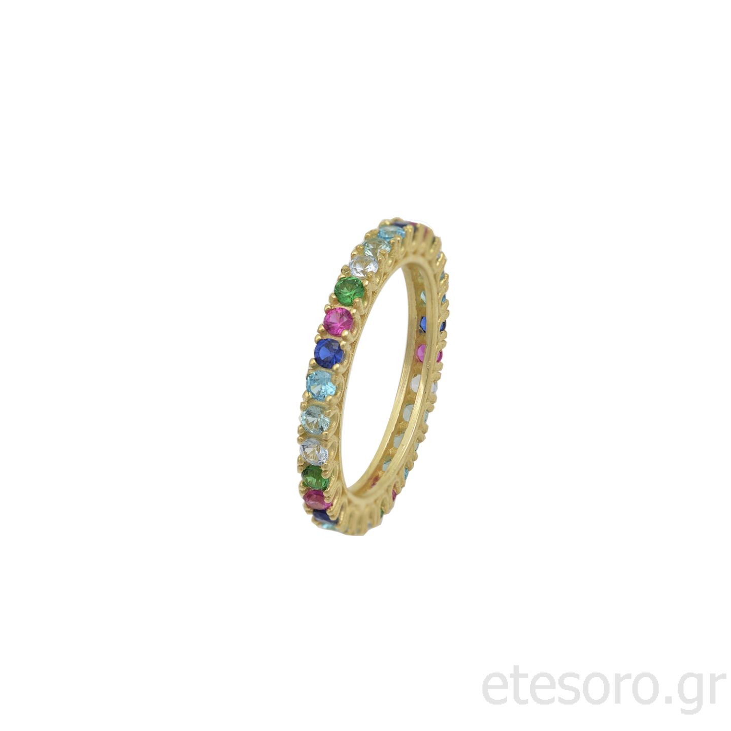 14Κ Χρυσό Δαχτυλίδι Σειρέ Με Πολύχρωμα Ζιργκόν