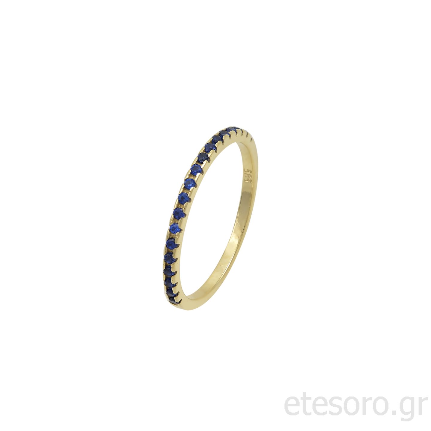με σκούρες μπλε πέτρες Ζιργκόν στη μισή περιφέρεια του, ενώ η υπόλοιπη έχει γυαλιστερή όψη.