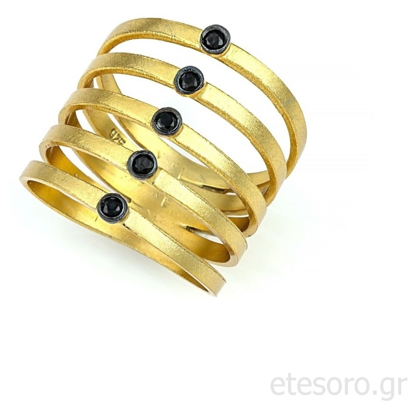 Δαχτυλίδι από επιχρυσωμένο ασήμι με μαύρα ζιργκόν.