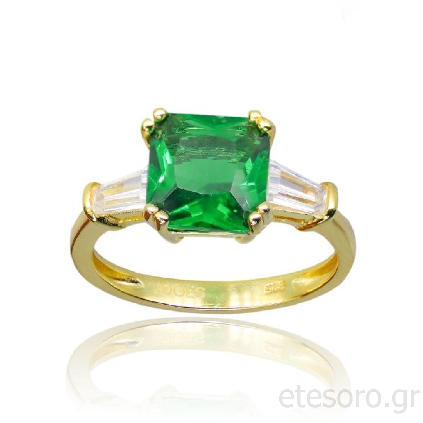 Δαχτυλίδι από επιχρυσωμένο Ασήμι 925°, με πράσινο Ζιργκόν