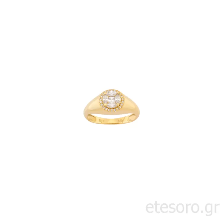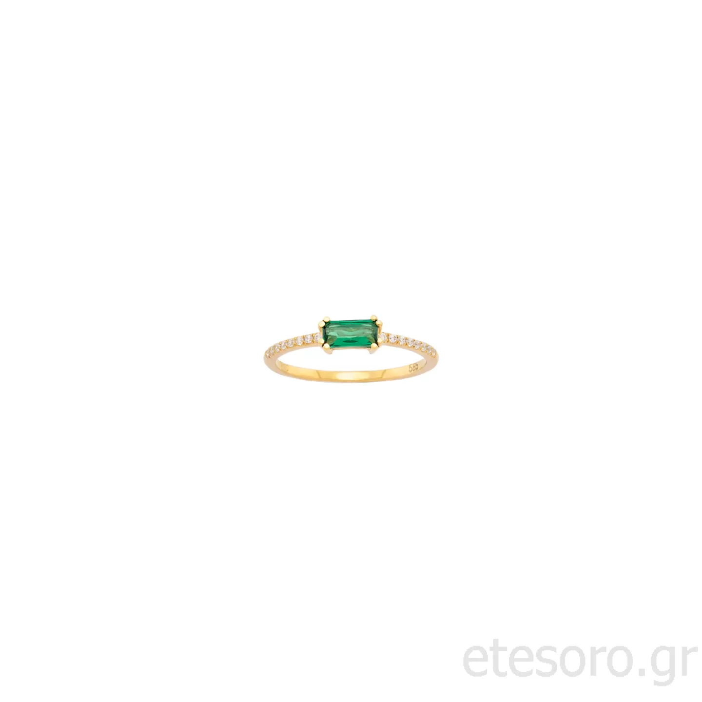Χρυσό γυναικείο δαχτυλίδι από κίτρινο χρυσό 14Κ με πράσινο Ζιρκόν στο κέντρο και λευκά Ζιρκόν περιφερειακά.