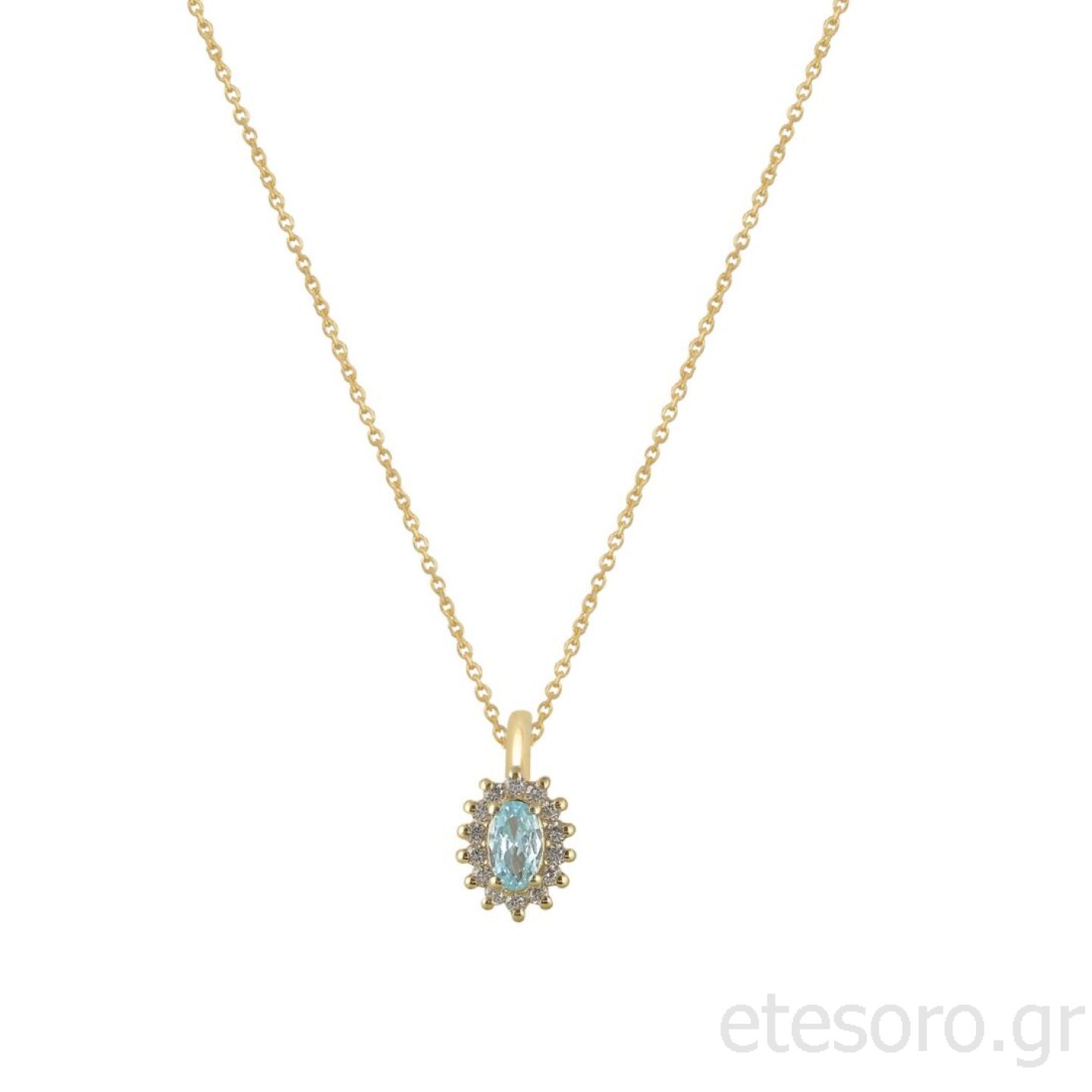 με εντυπωσιακή Ζιργκόν πέτρα σε γαλάζιο χρώμα και οβάλ σχήμα στο κέντρο