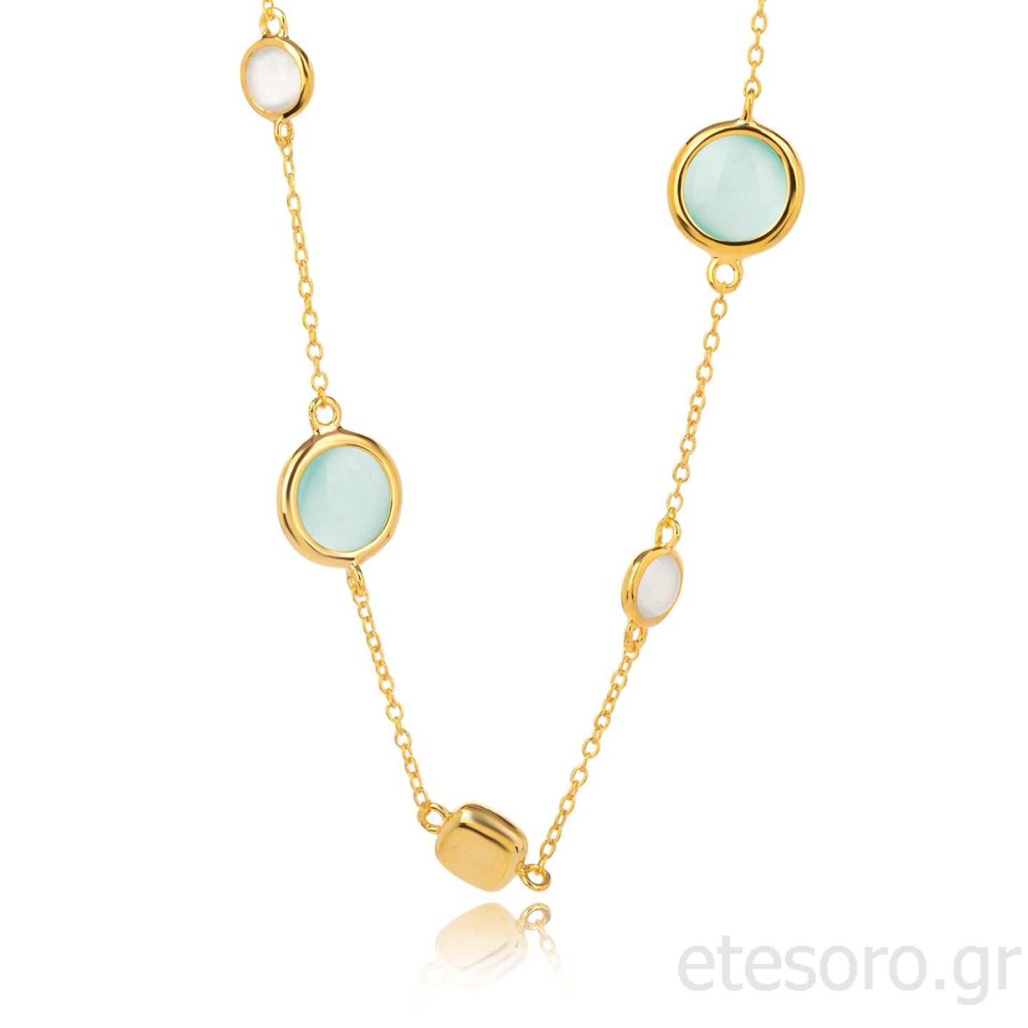 Επιχρυσωμένο Κολιέ με Μάτι γάτας και φίλντισι