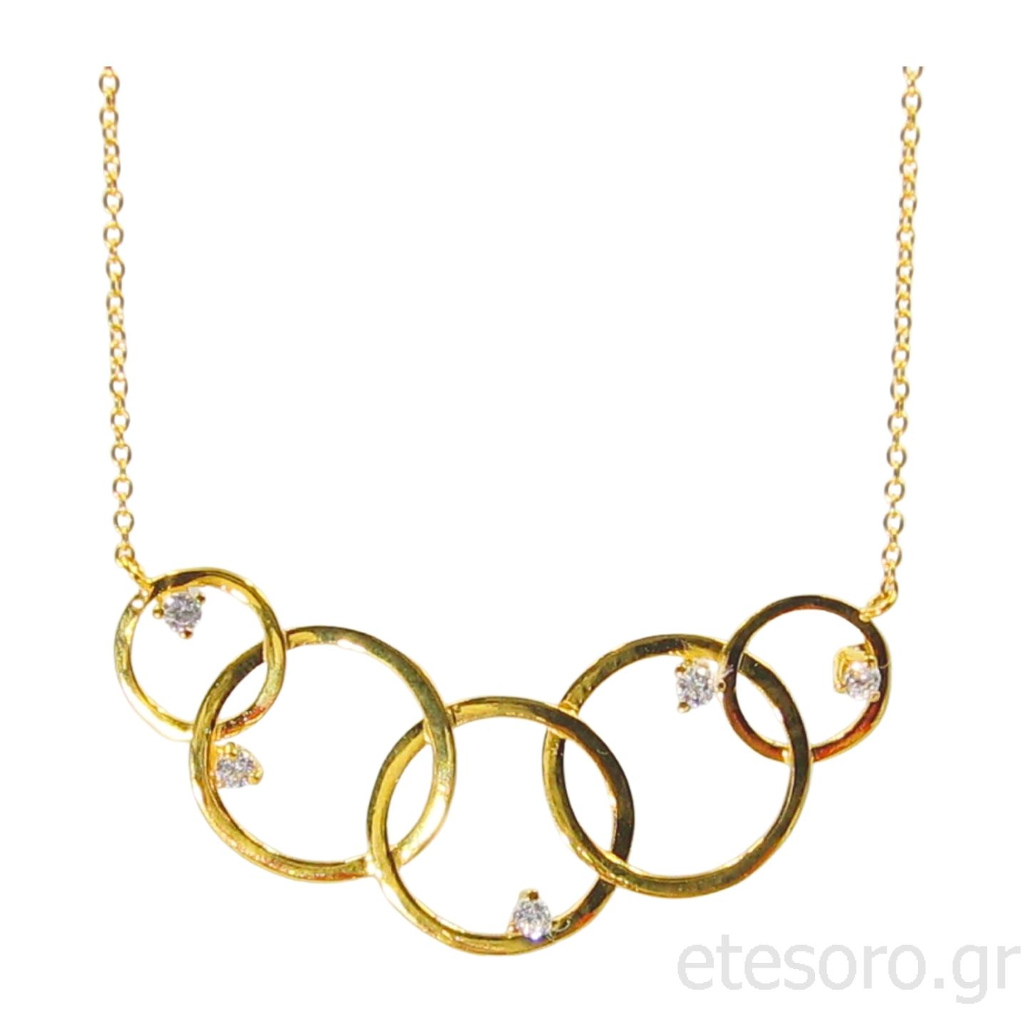 Χρυσό κολιέ με πέντε ασύμμετρους κύκλους και πέτρες ζιρκόν από χρυσό 14Κ.