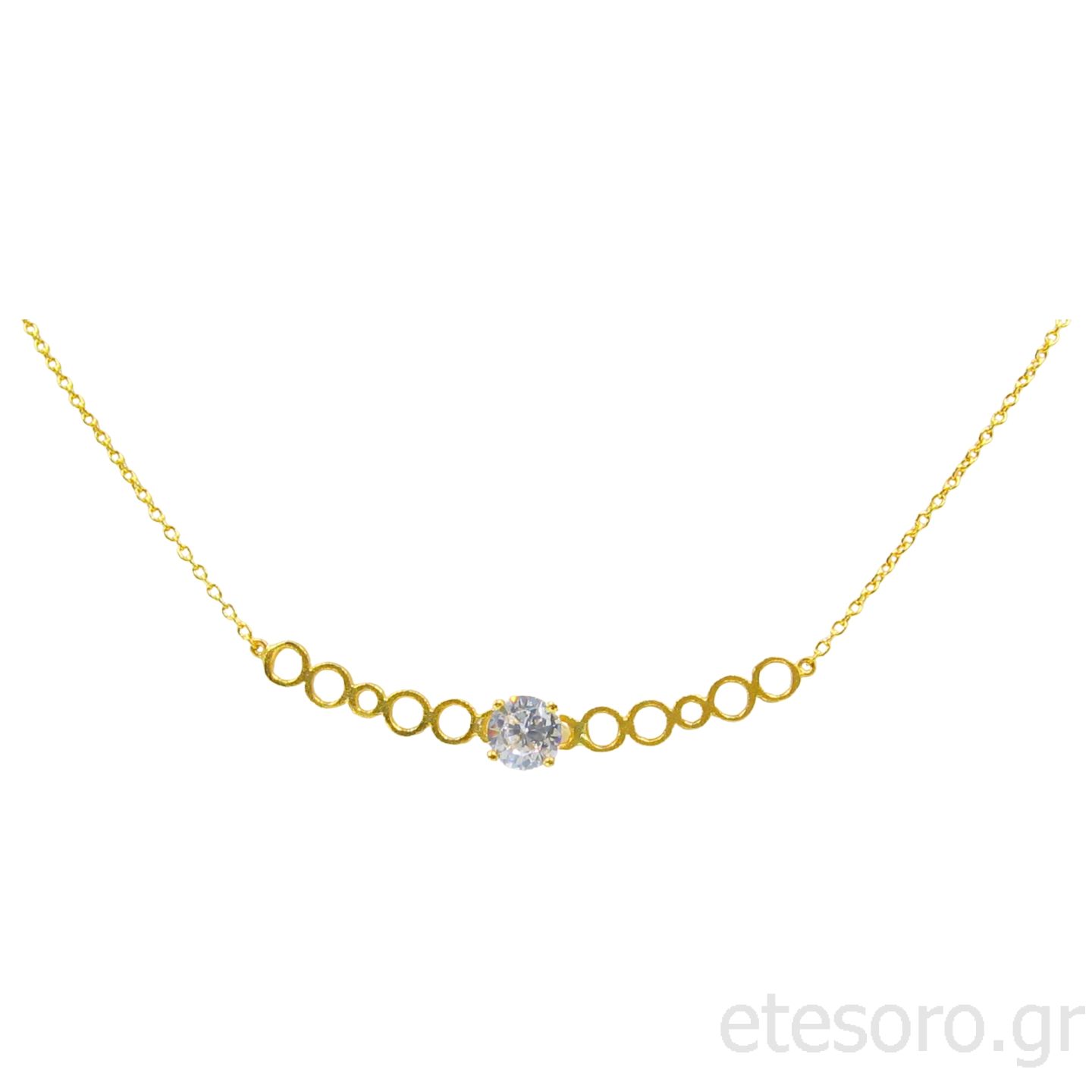 Χρυσό κολιέ μονόπετρο με κύκλους