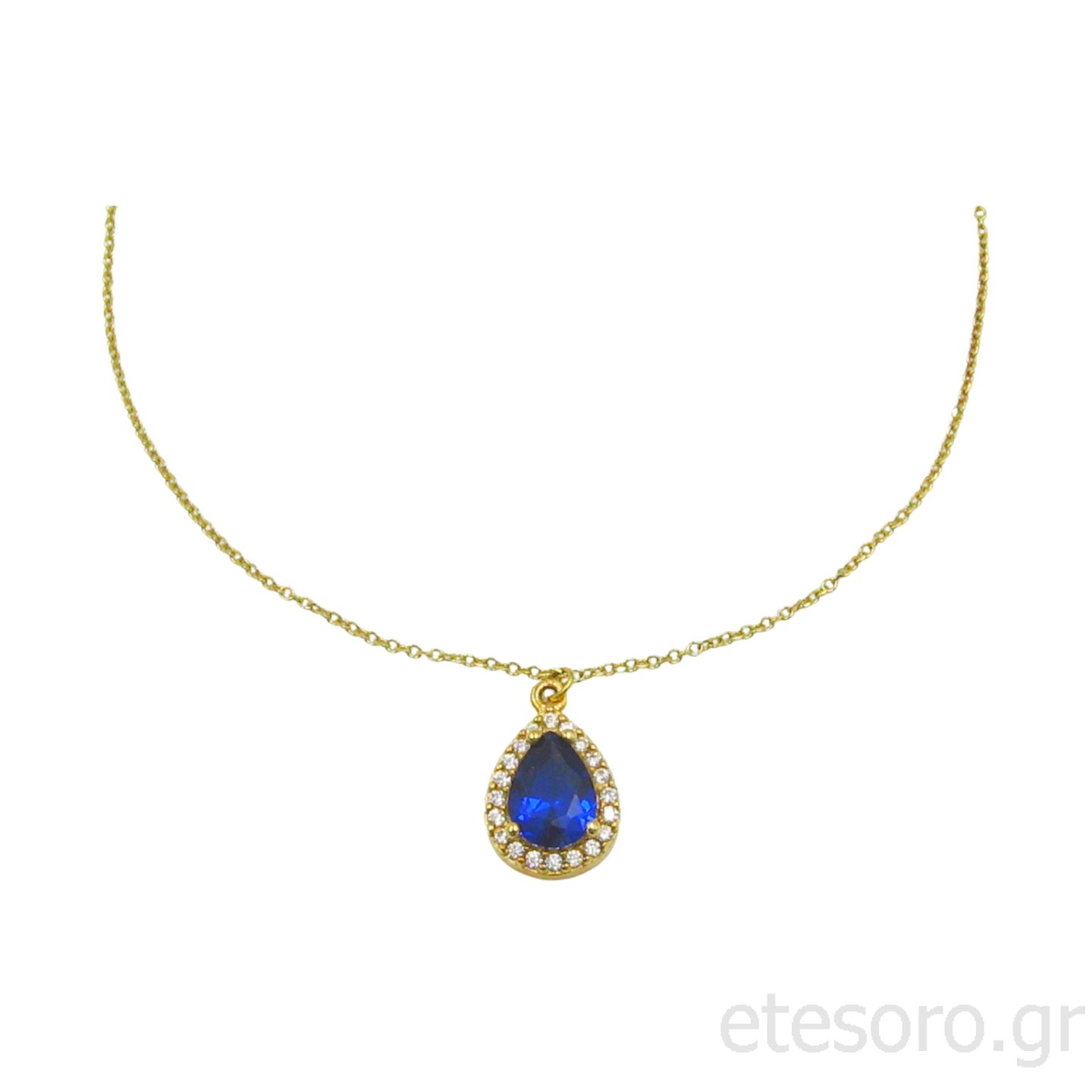 14K Χρυσό κολιέ ροζέτα μπλέ
