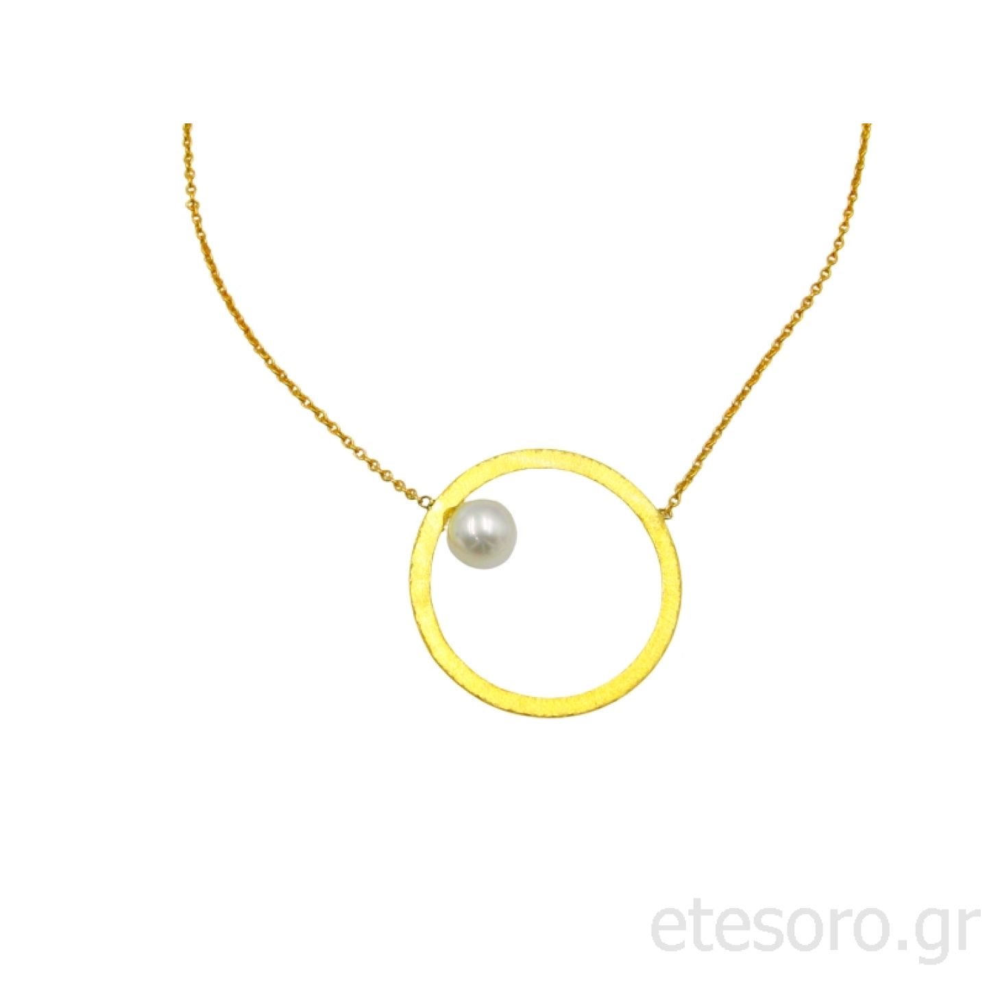Χρυσό κολιέ 14καρατίων, κύκλος σαγρε φινίρισμα με μαργαριτάρι γλυκού νερού.