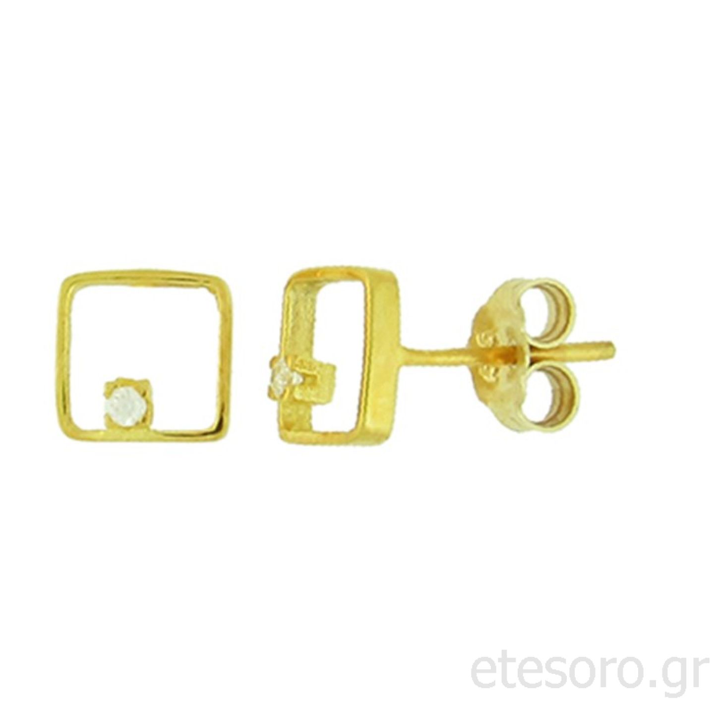 Χρυσά καρφωτά σκουλαρίκια, τετράγωνο με ζιργκόν σχέδιο για καθημερινή χρήση .