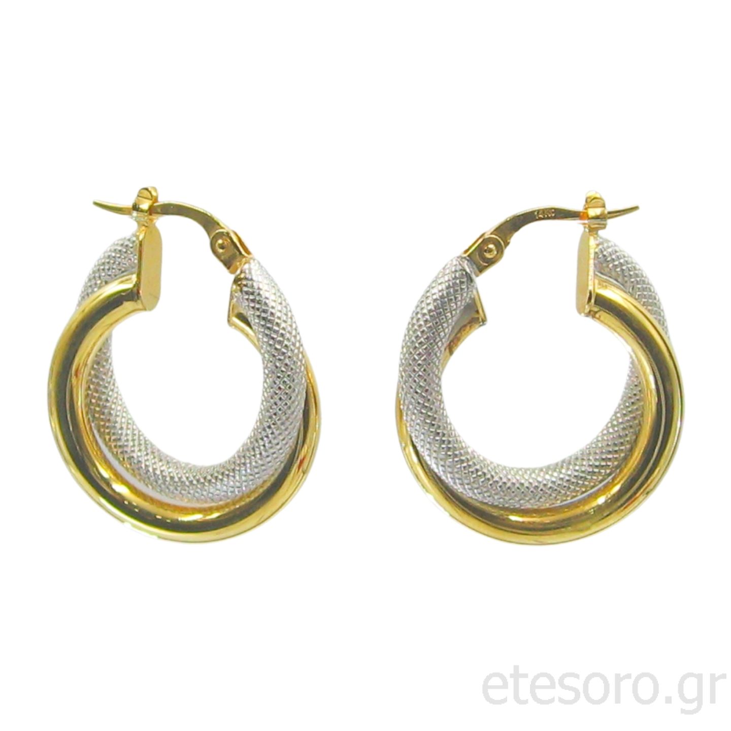 14Κ Χρυσοί Κρίκοι Δίχρωμοι Με Γυαλιστερή Και Ματ Επιφάνεια