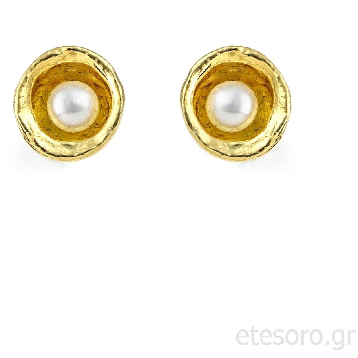 Σκουλαρίκια καρφωτά από επιχρυσωμένο ασήμι, με μαργαριτάρι.