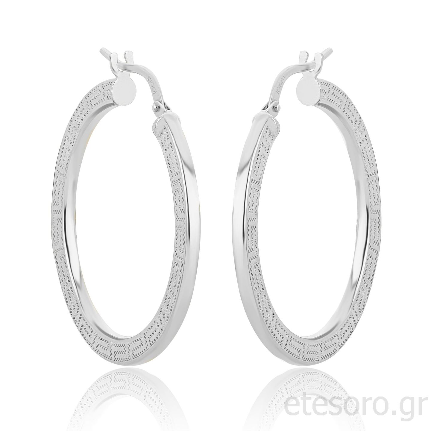 Ασημένιοι κρίκοι με σχέδιο μαίανδρο