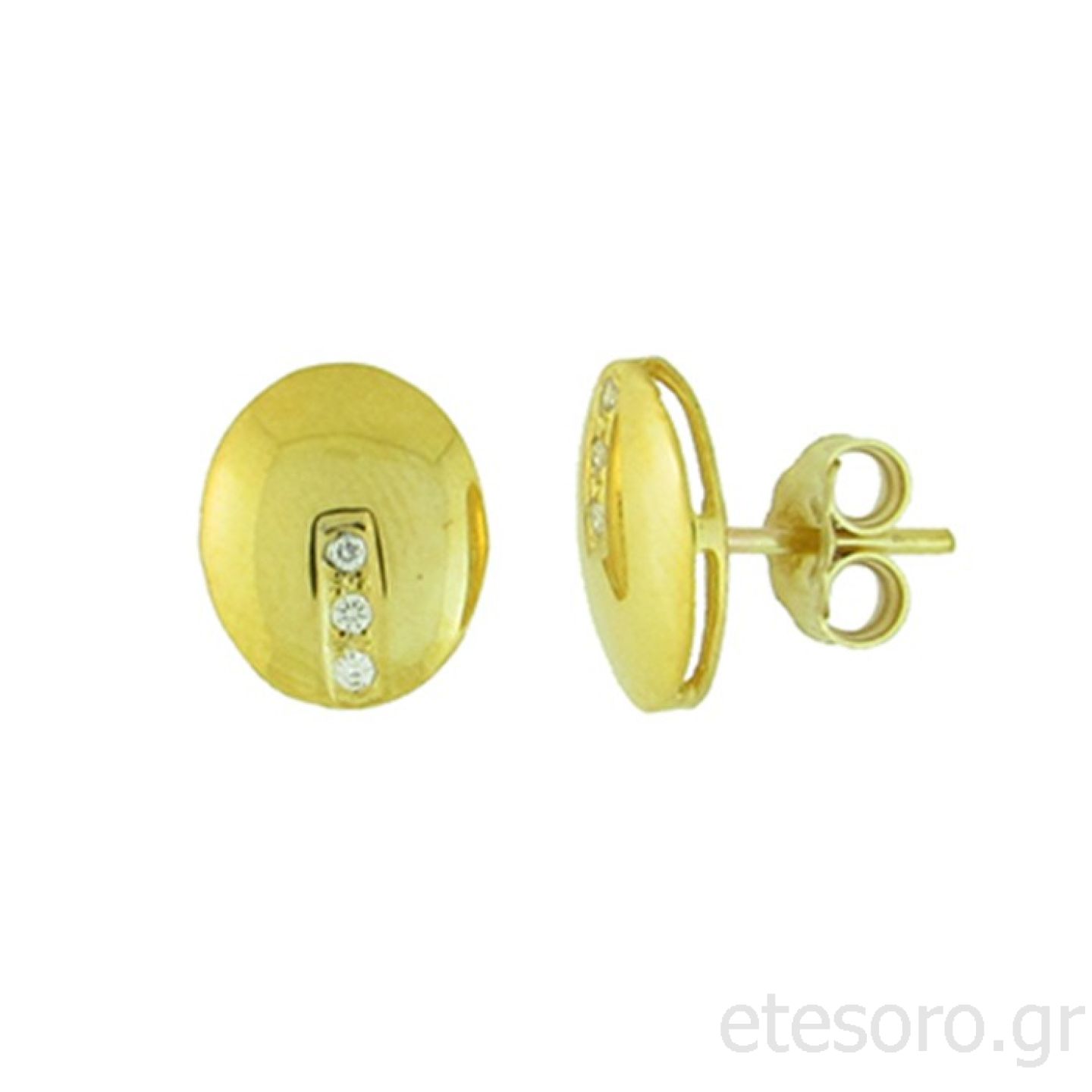 Χρυσά καρφωτά σκουλαρίκια, με ζιργκόν σχέδιο για καθημερινή χρήση .