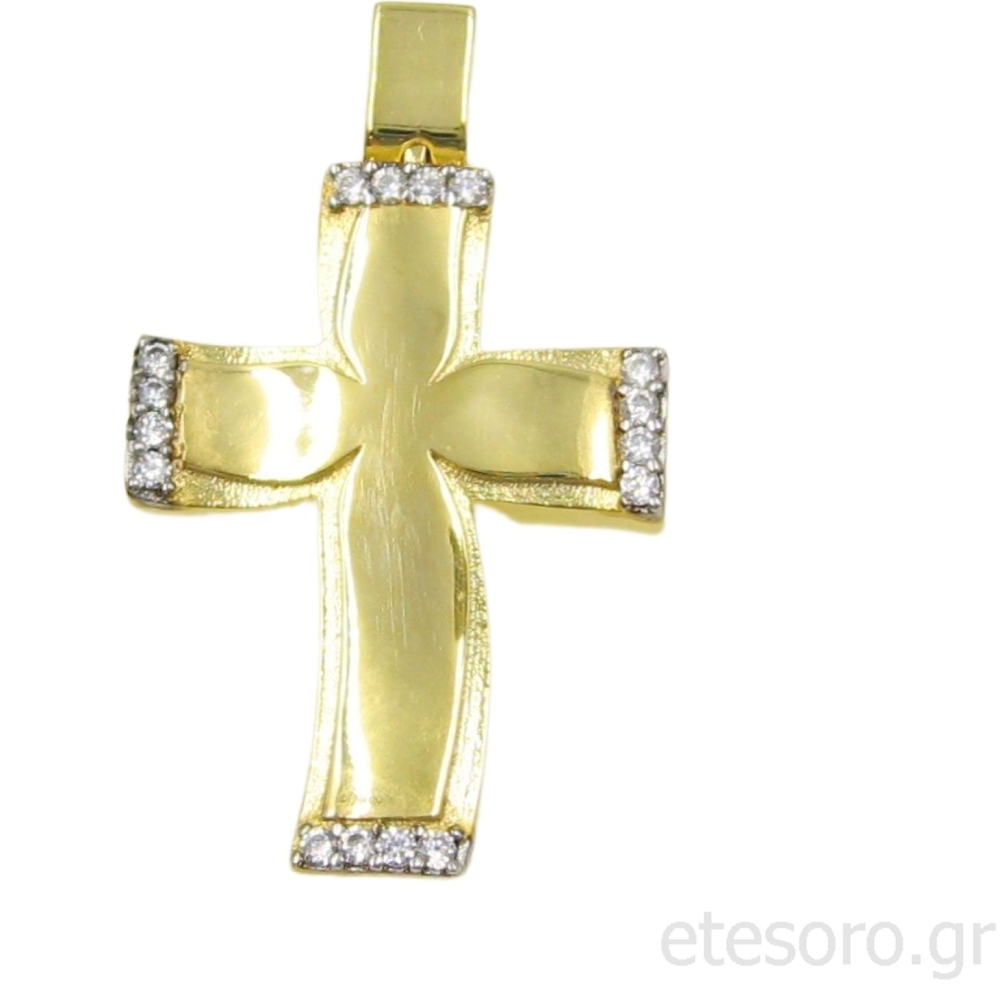 Γυναικείος βαπτιστικός σταυρός από κίτρινο χρυσό 14 καρατίων, διπλής όψεως.