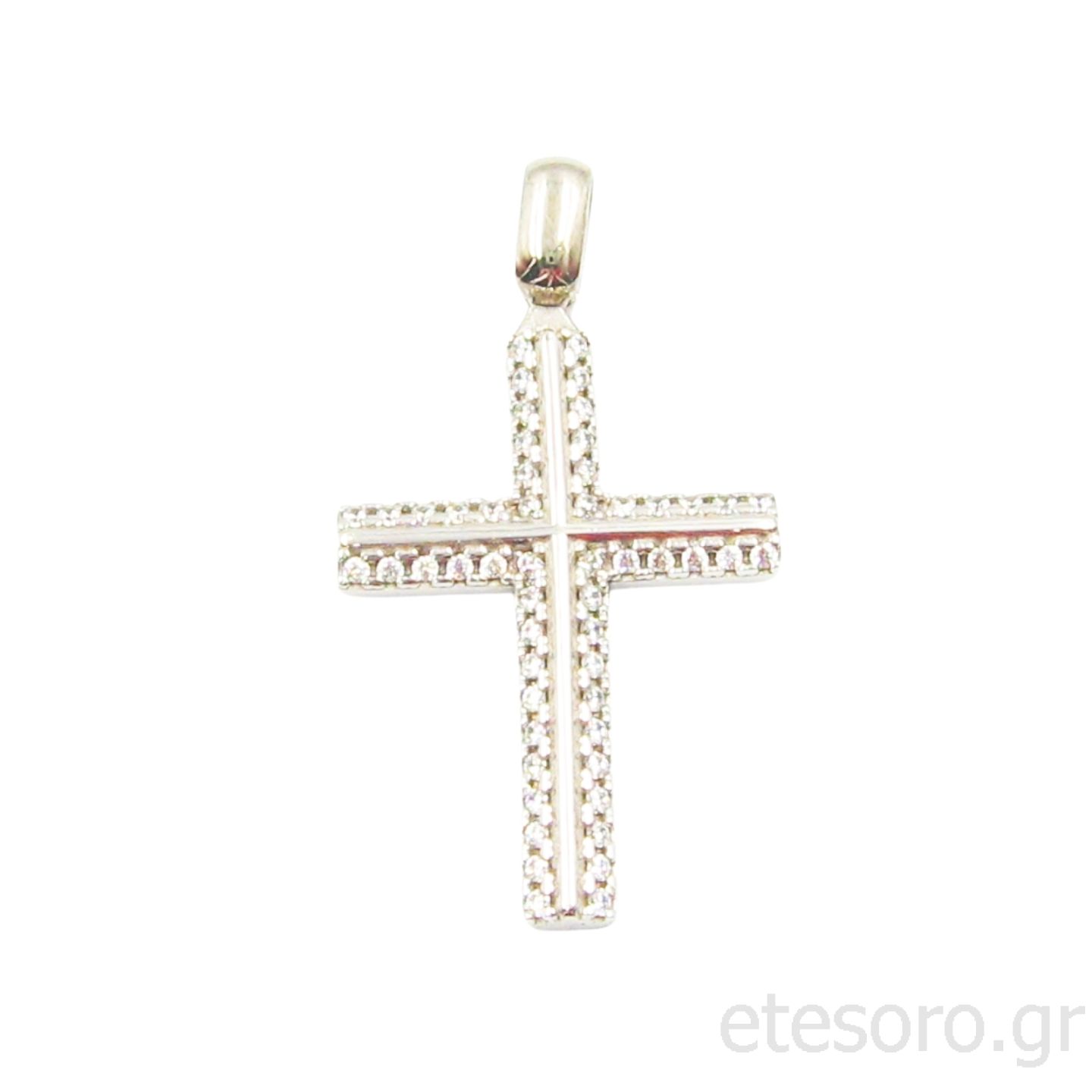 Ο σταυρός αυτός περιβάλλεται από ζιρκόν πέτρες.
