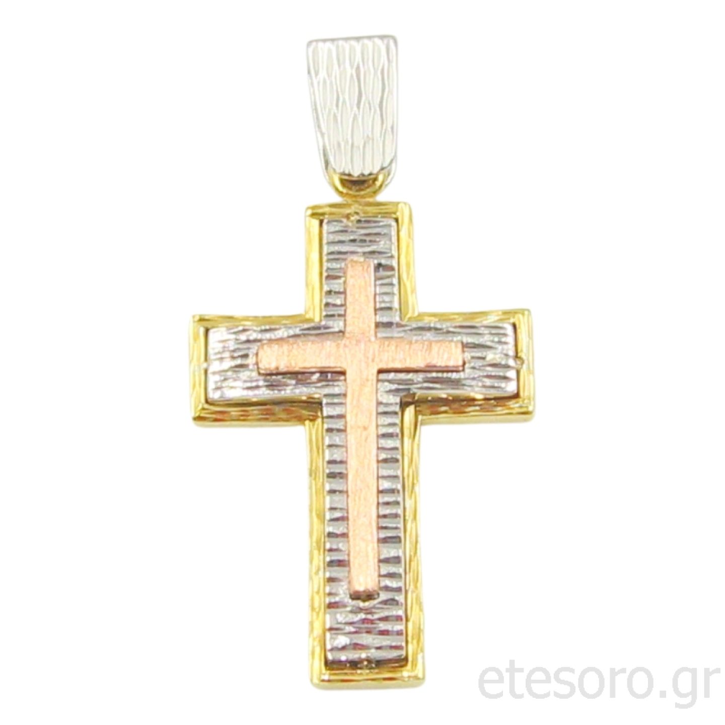 14Κ Χρυσός Τρίχρωμος Βαπτιστικός Σταυρός