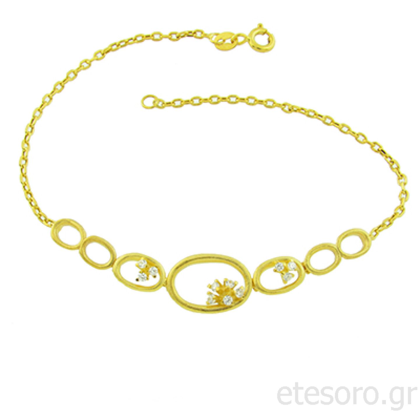 14Κ Χρυσό Βραχιόλι Με Οβάλ Κύκλους Και Μαργαρίτες Με Ζιργκόν