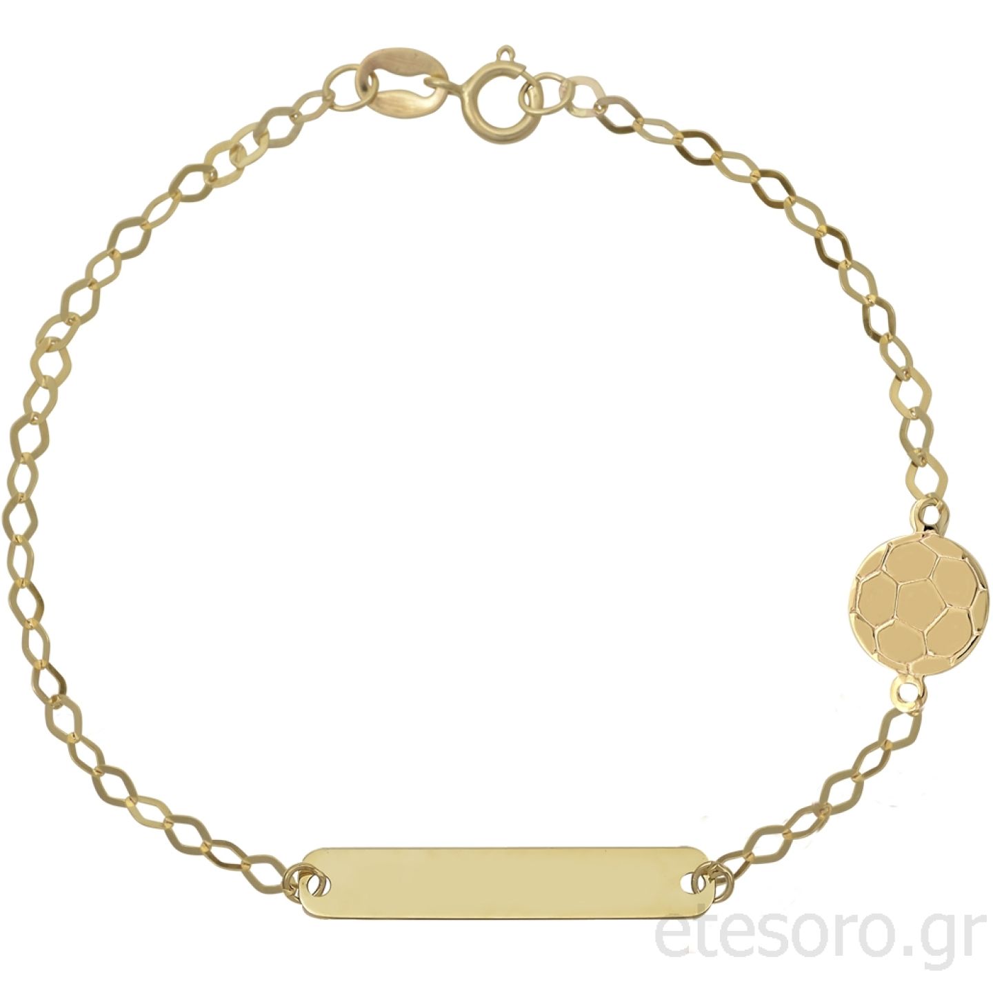 Χρυσή παιδική ταυτότητα με μπάλα στο πλάι, μπορούμε να χαράξουμε όνομα, φράση, ή ημερομηνία της επιλογής σας.