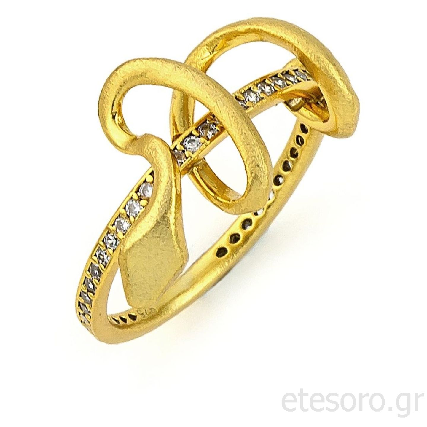 Δαχτυλίδι από επιχρυσωμένο ασήμι με πέτρες ζιργκόν