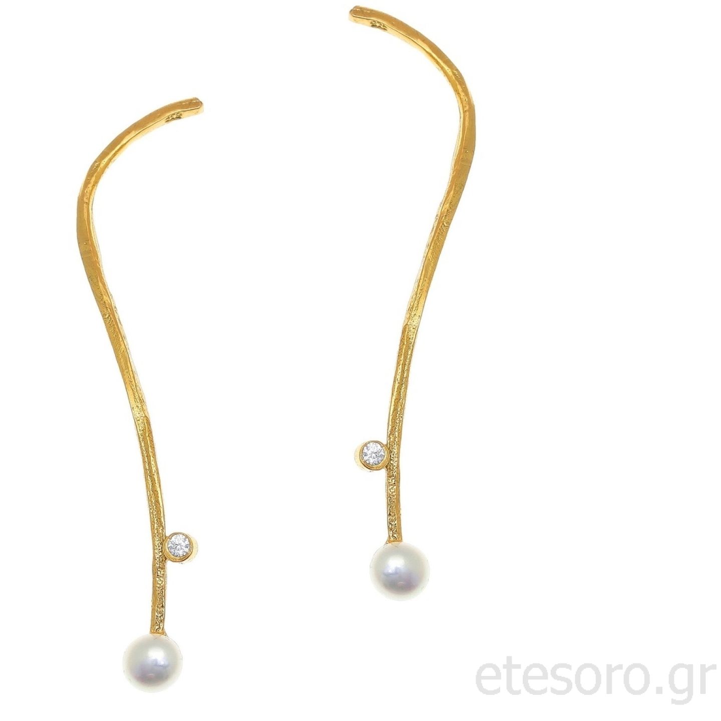Σκουλαρίκια από επιχρυσωμένο ασήμι με μαργαριτάρι και ζιργκόν