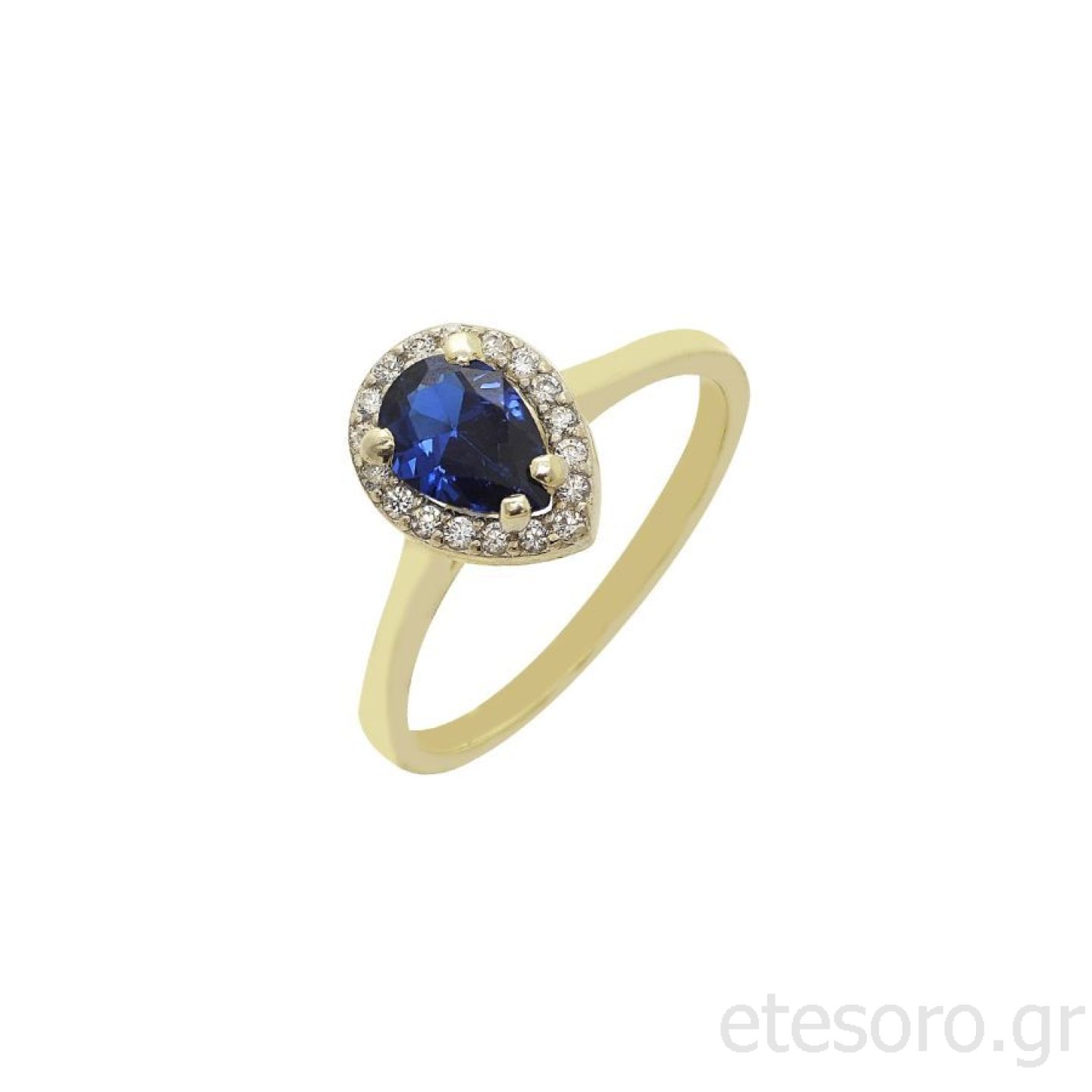 14Κ Χρυσό Δαχτυλίδι Ροζέτα Με Βαθύ Μπλε Ζιργκόν