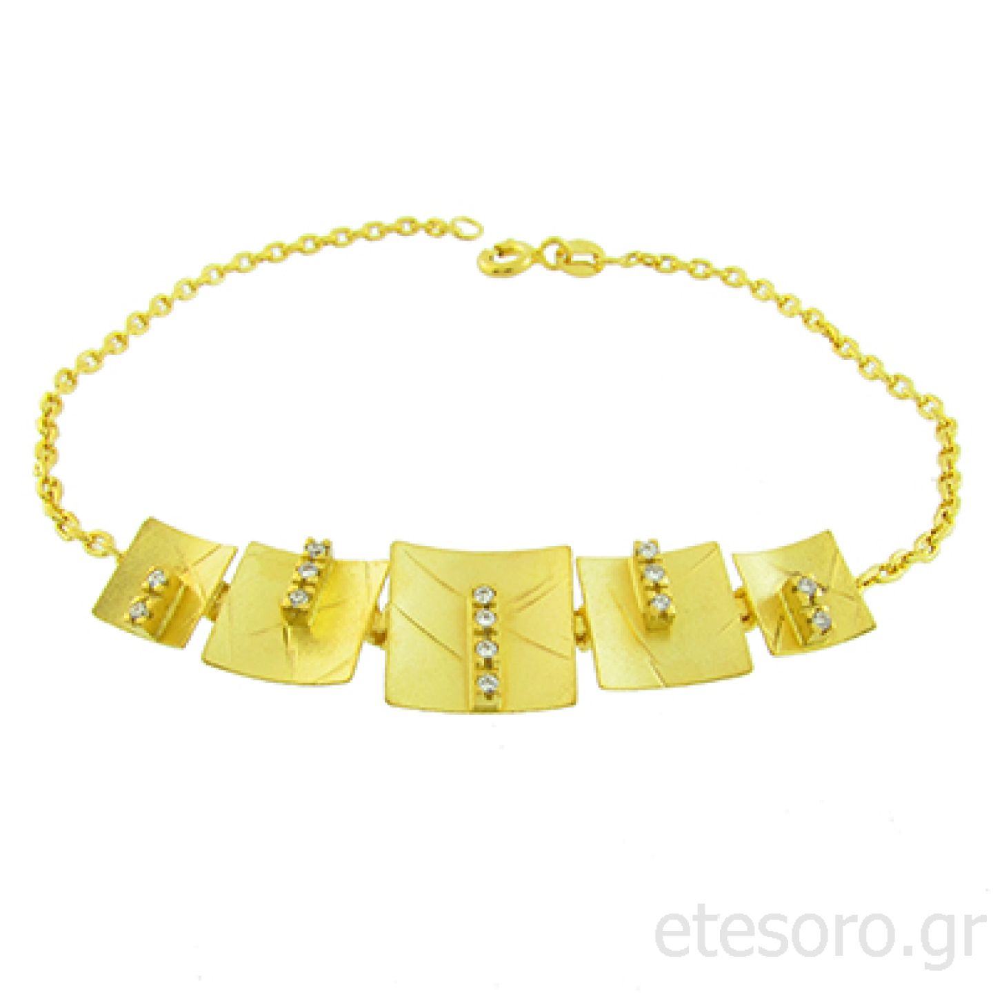 14Κ Χρυσό Βραχιόλι Με Τετράγωνα Στοιχεία Και Ζιργκόν