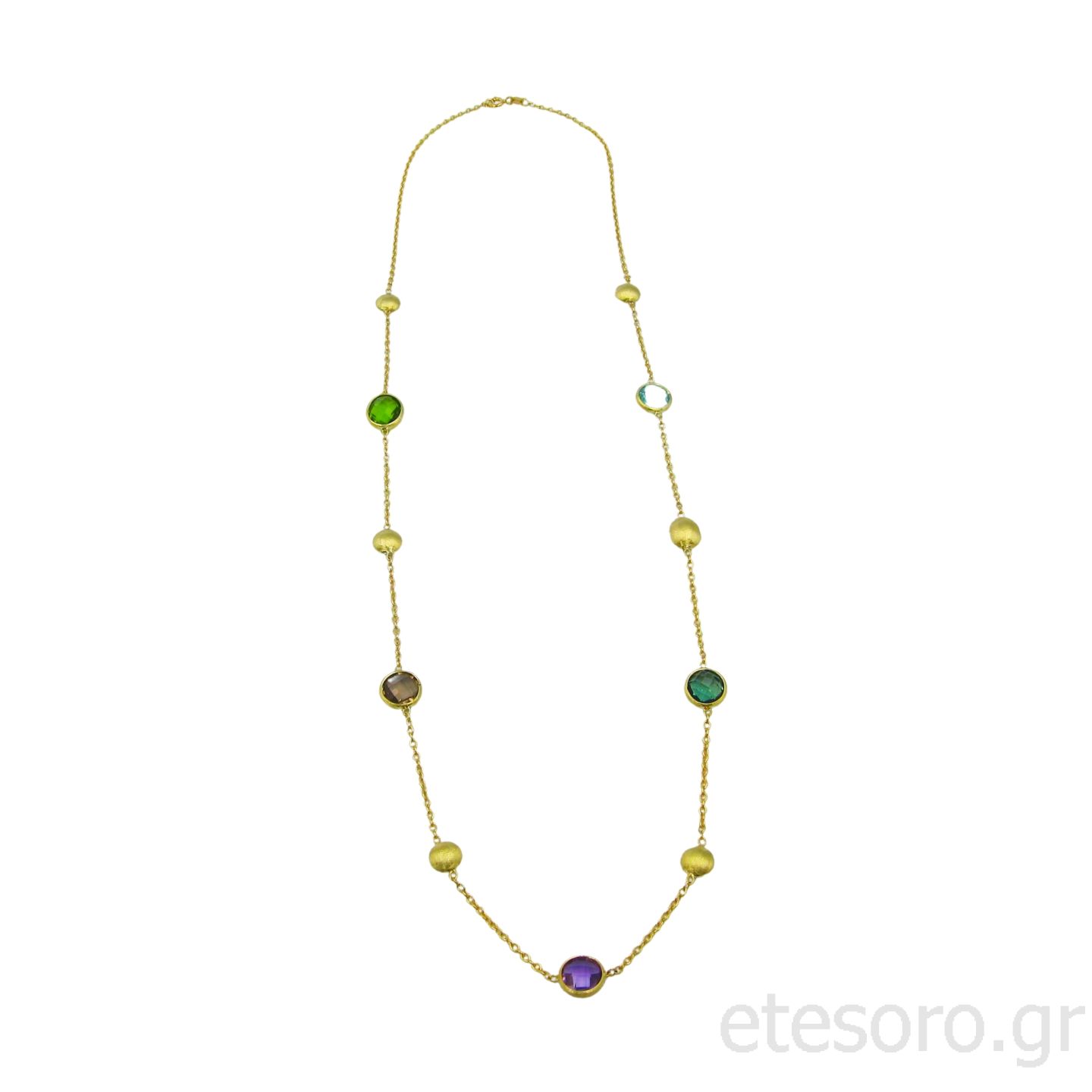 14K Χρυσό κολιέ με πολύχρωμους ορυκτούς λίθους
