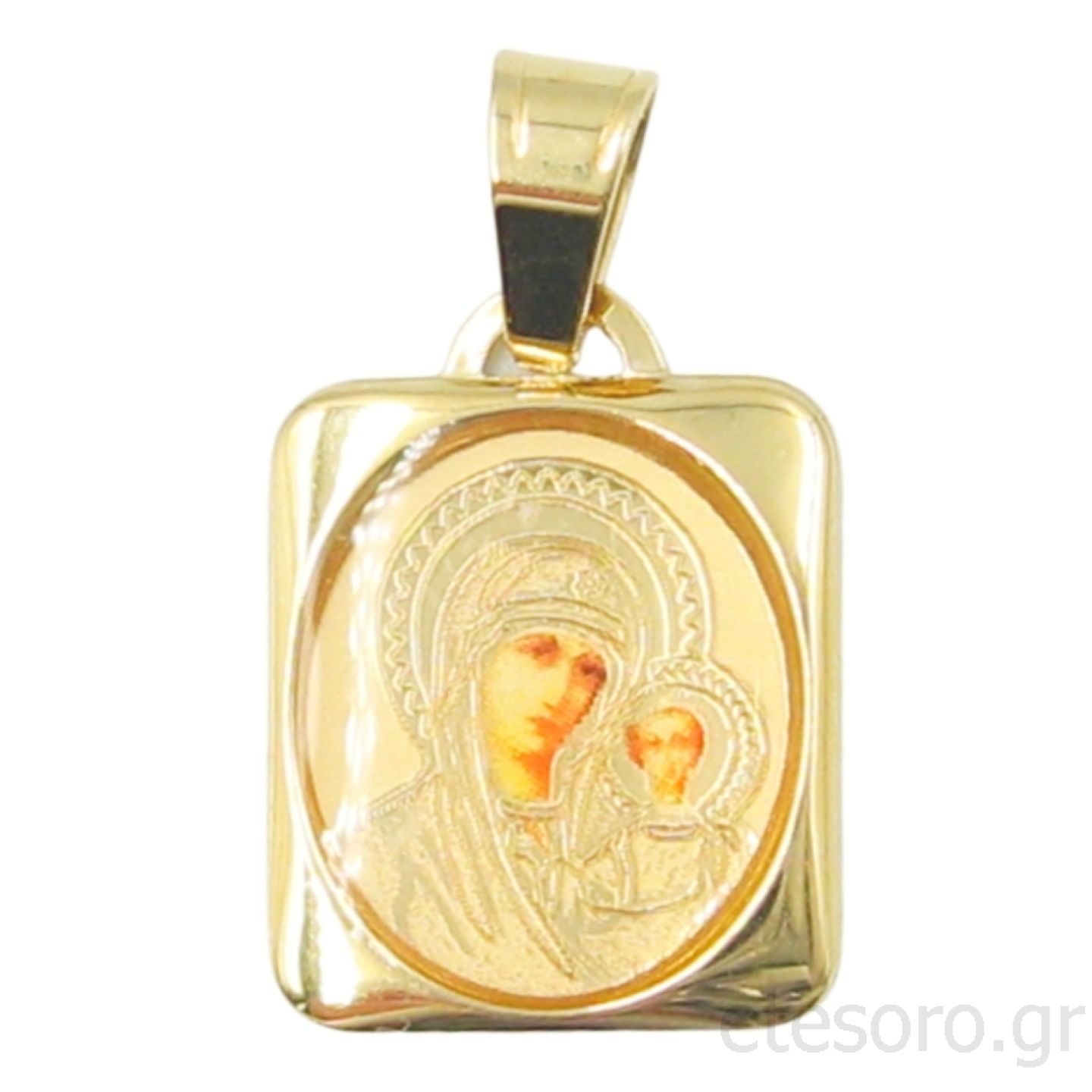 Μενταγιόν από κίτρινο χρυσό 14 καρατίων, σε τετράγωνο σχήμα.
