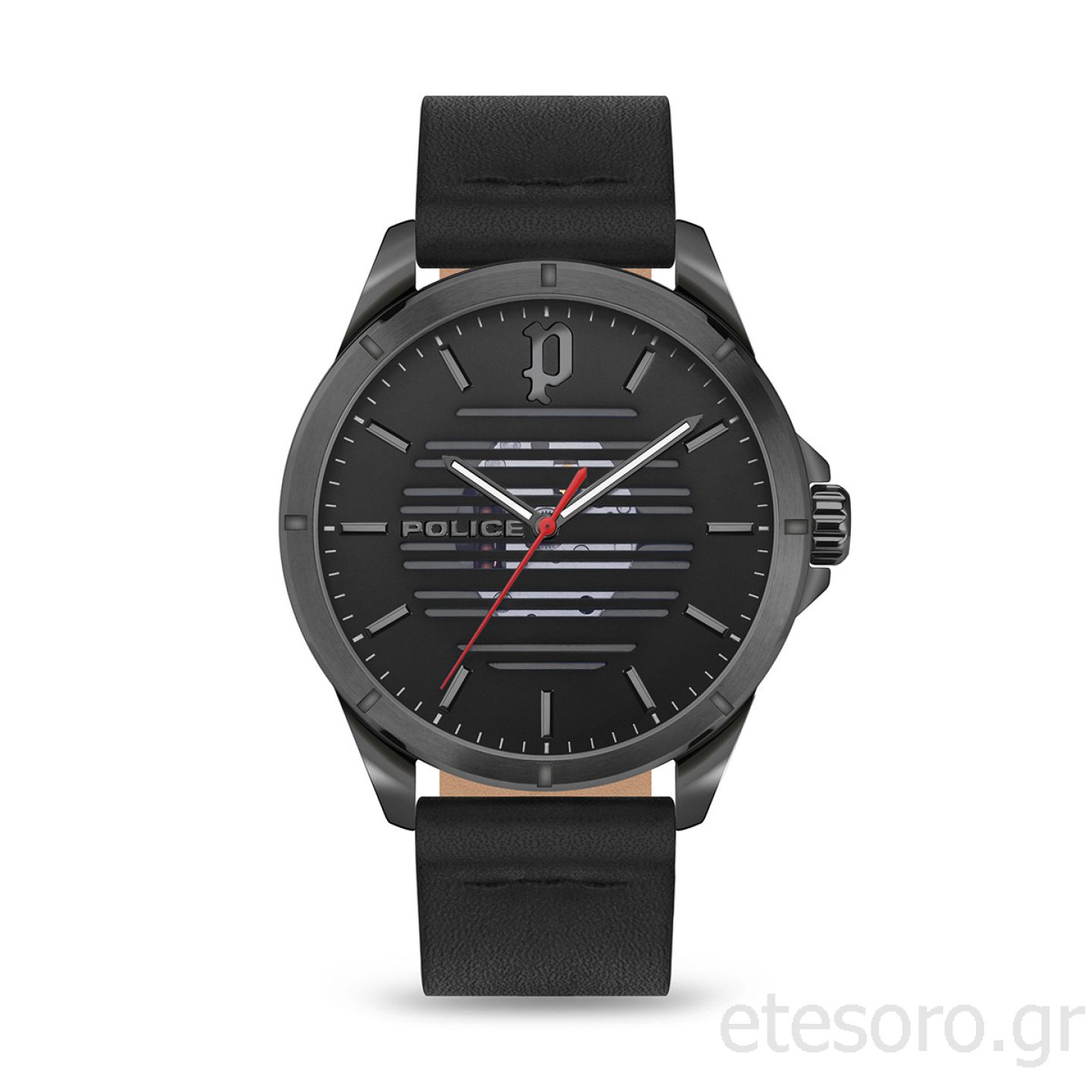 POLICE BARWARA Collection! Ανδρικό ρολόι με κάσα από ανοξείδωτο ατσάλι και δερμάτινο λουράκι.