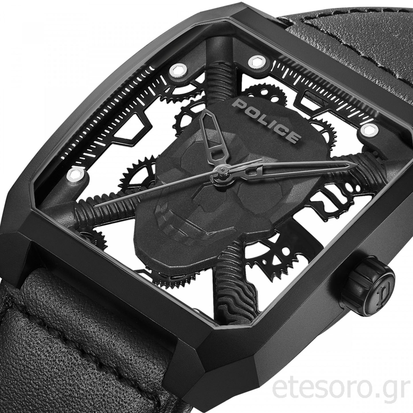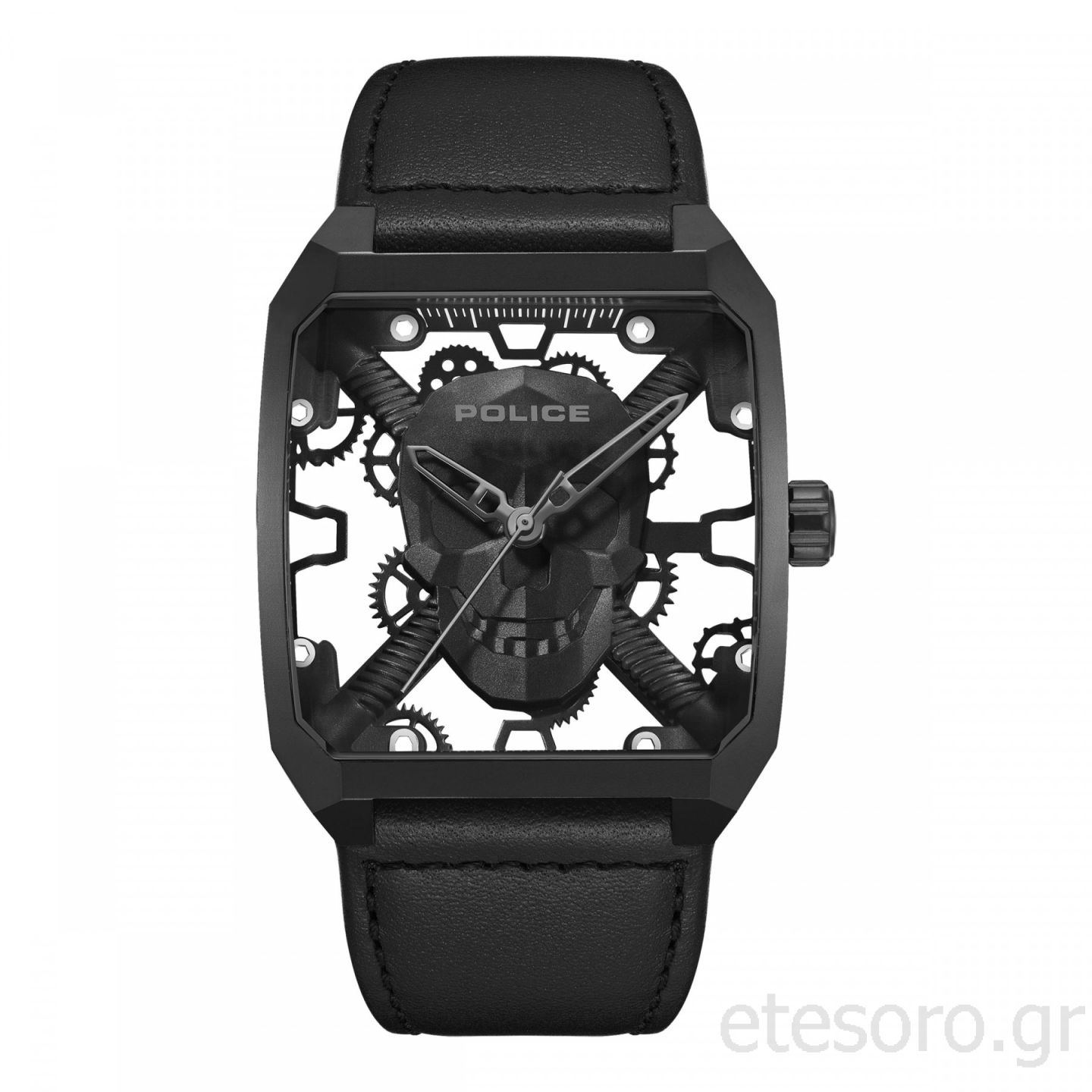 POLICE OMAIO Collection! Ανδρικό ρολόι με κάσα από ανοιξείδωτο ατσάλι και δερμάτινο μαύρο λουράκι, με 5atm αδιαβροχότητα.