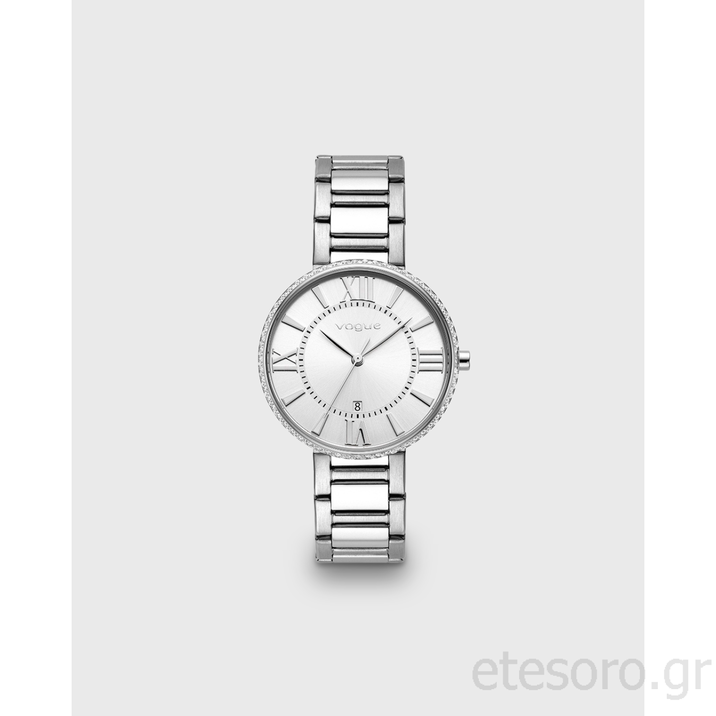 και διαθέτει λατινικούς αριθμούς στις κεντρικές ενδείξεις της ώρας στο γυναικείο ρολόι VOGUE της σειράς “Jet Set”.