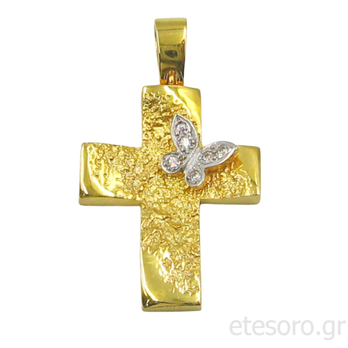 Γυναικείος βαπτιστικός σταυρός από κίτρινο και λευκό χρυσό 14 καρατίων.