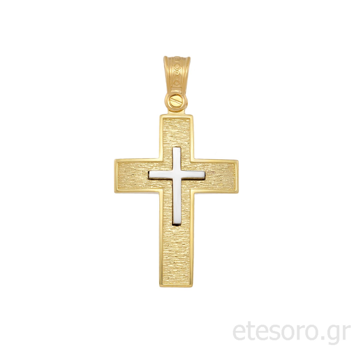 Δίχρωμος Βαπτιστικός σταυρός από 14Κ κίτρινο και λευκό χρυσό.