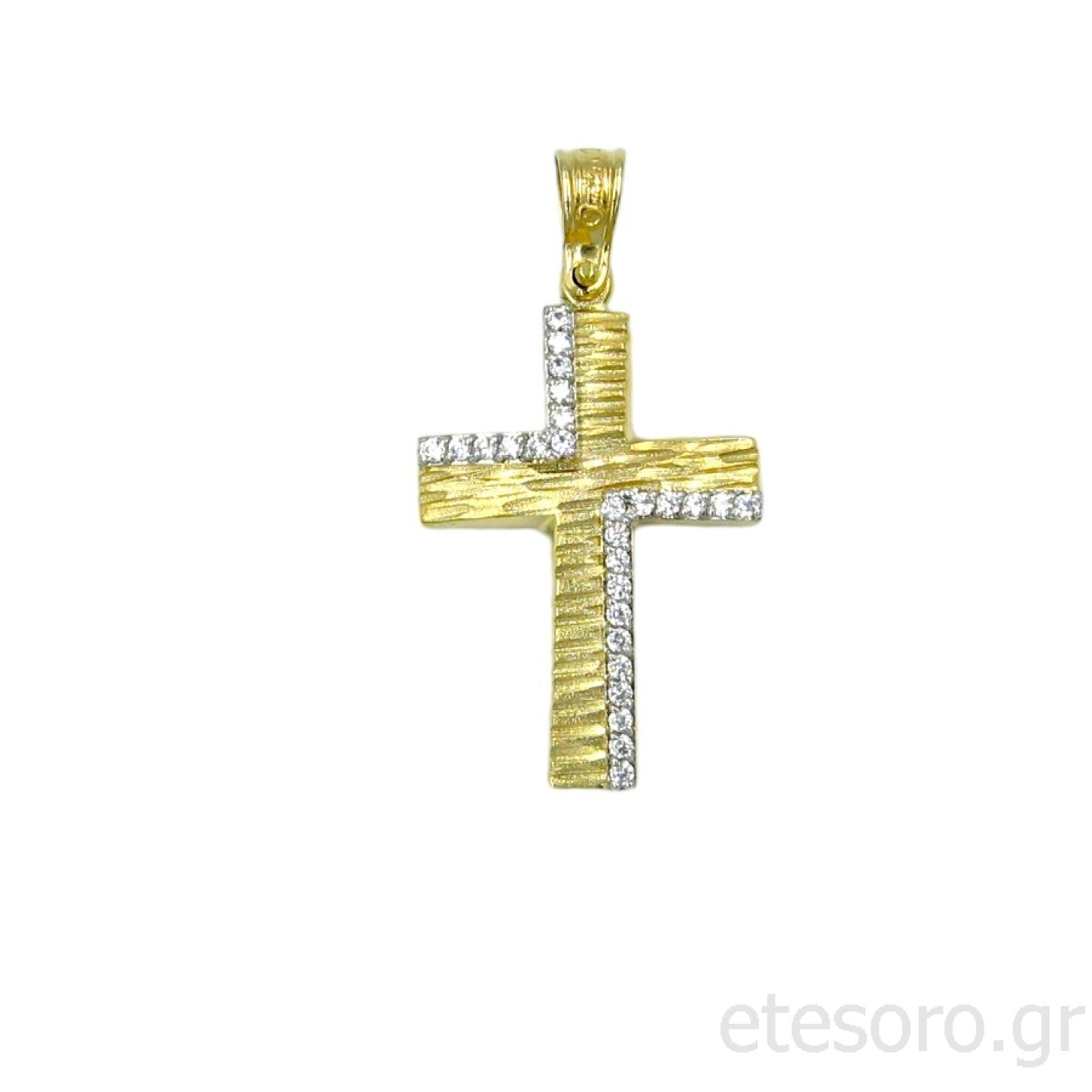 14Κ Χρυσός Γυναικείος Βαπτιστικός Σταυρός Με Ζιργκόν