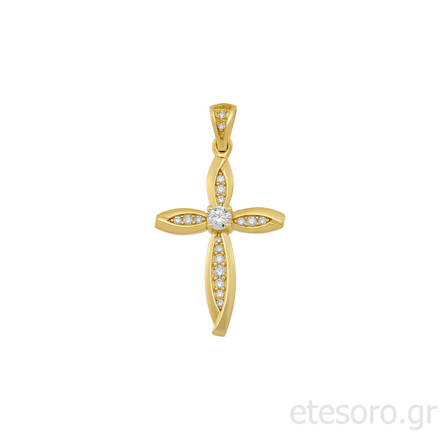 14Κ Χρυσός Σταυρός Με Λευκά Ζιργκόν
