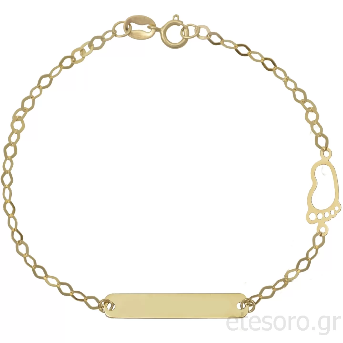 Bracelet has a baby footprint next to name plate.