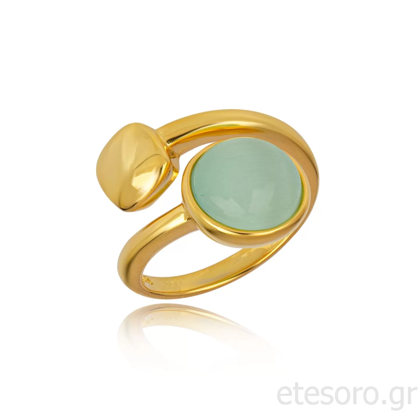 Women's Ring, made of Gold plated Silver 925o with Cats Eye Gem in the center.
