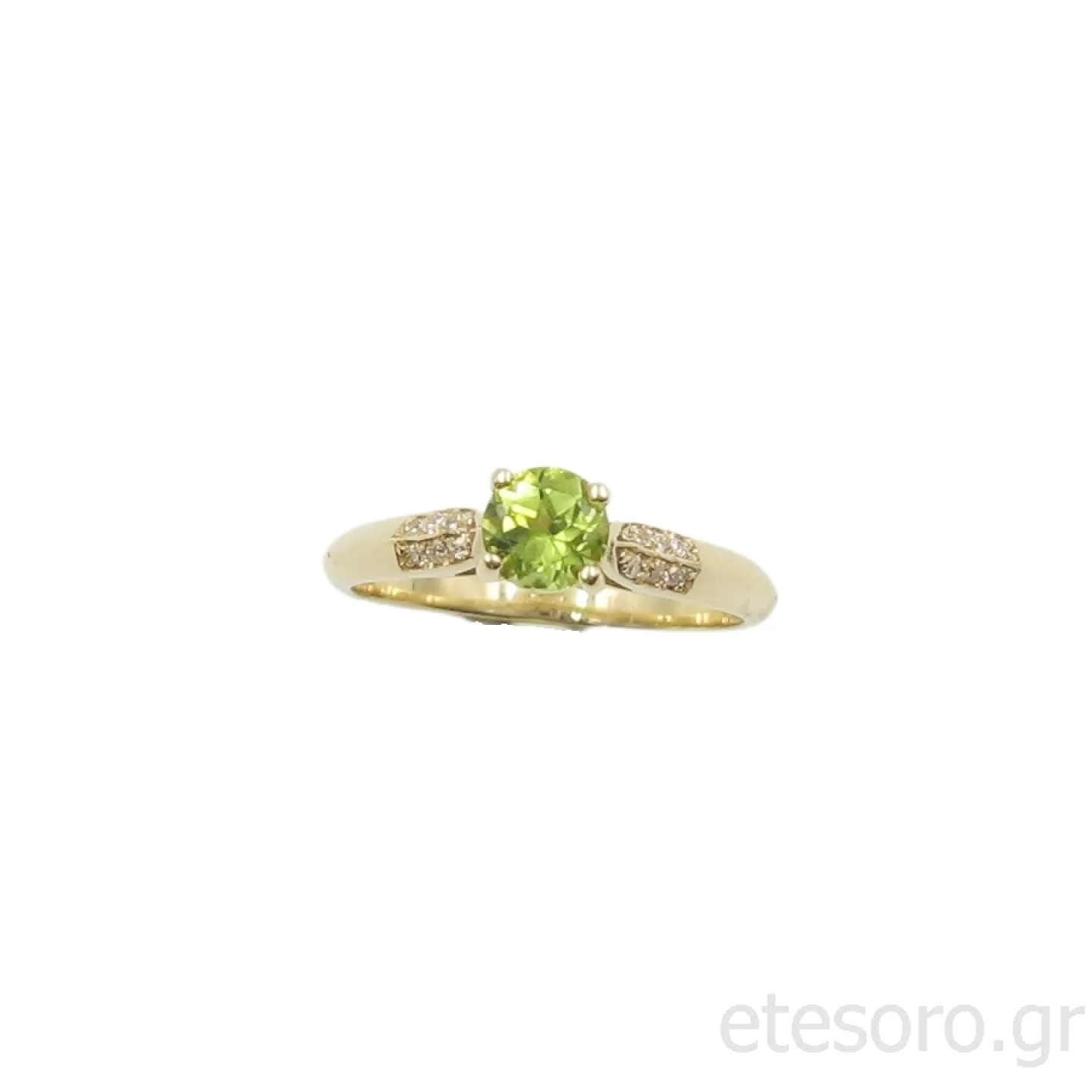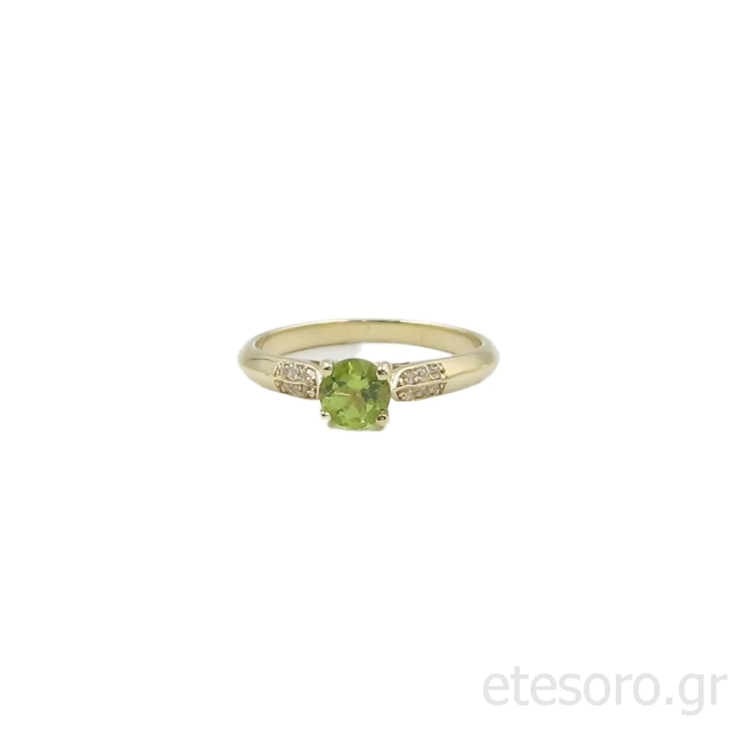 Women's Ring made of 14 karat Gold,with sparkling round green Peridot