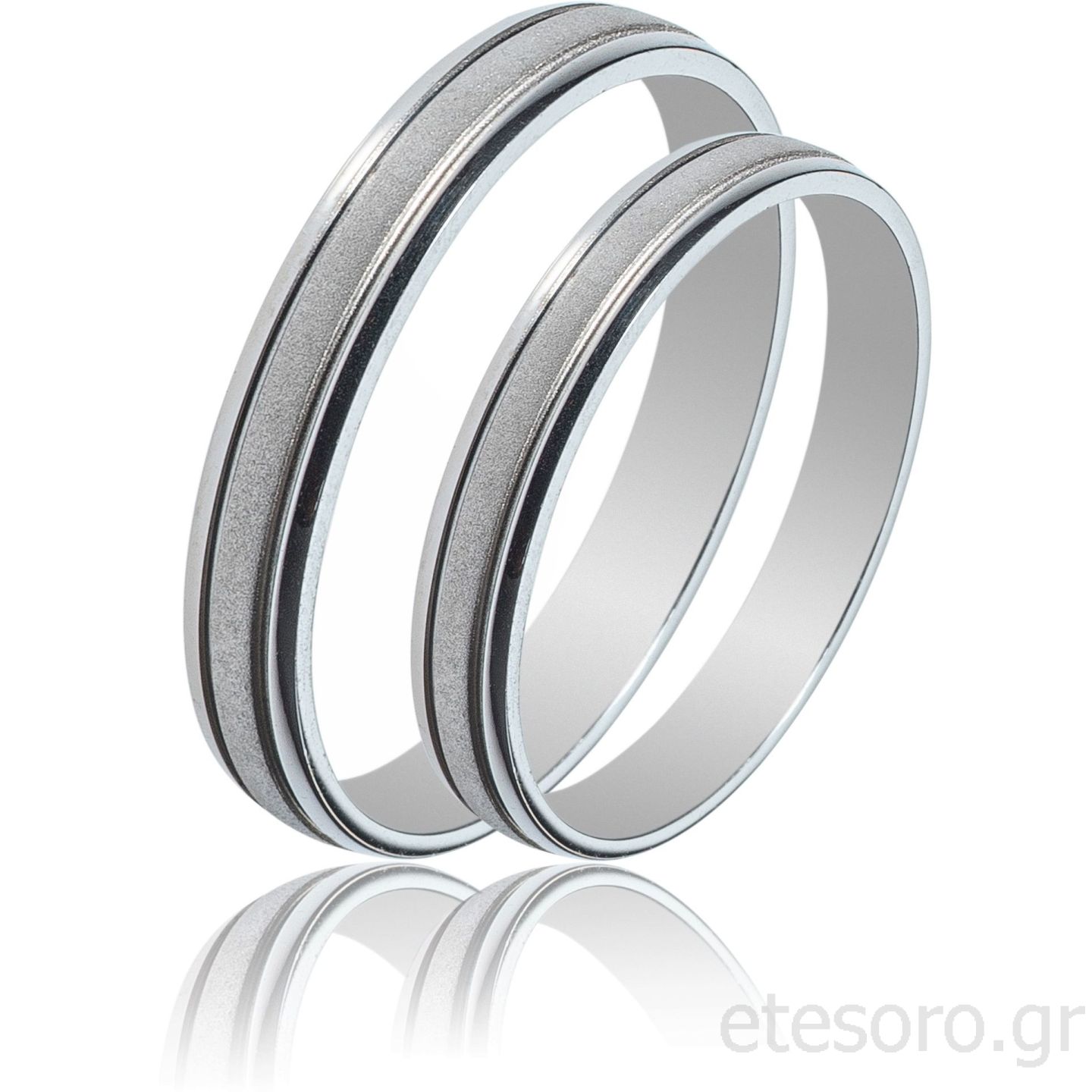 Wedding rings 14 or 18 karat white gold with a combination of matt and shiny surface.